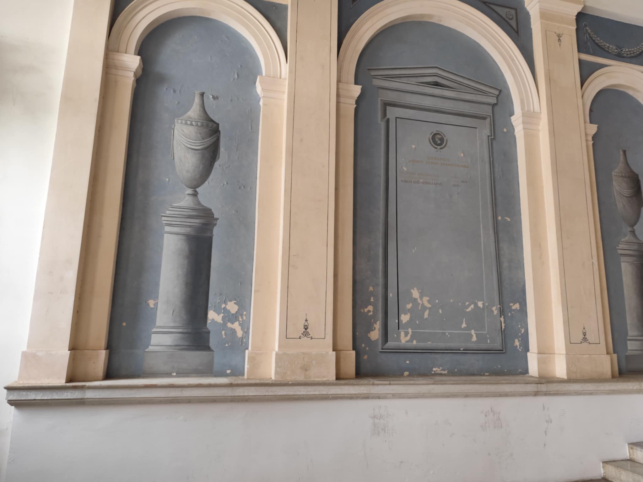 Σε ήπιες συντηρήσεις, κυρίως χρωματισμού του καλλιτεχνικού διακόσμου στον εσωτερικό χώρο του Δημαρχιακού Μεγάρου, αναμένεται να προχωρήσει ο Δήμος Σύρου - Ερμούπολης το επόμενο διάστημα και πάντως μέσα στο 2025, “συμμαζεύοντας”, αλλά και φρεσκάροντας την εικόνα κεντρικών χώρων του ιστορικού ακινήτου, που δεσπόζει στην πλατεία Μιαούλη.