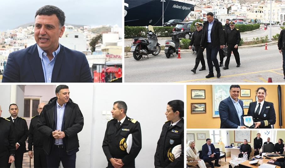 Συνοδευόμενος από τον νέο αρχηγό του Λιμενικού Σώματος – Ελληνικής Ακτοφυλακής, Τρύφωνα Κοντιζά, αλλά και τον γενικό γραμματέα Ναυτιλίας και Λιμένων, Ευάγγελο Κυριαζόπουλο, ο κ. Κικίλιας επισκέφθηκε πρώτα το Λιμεναρχείο Σύρου, όπου και είχε συνάντηση με τη νέα λιμενάρχη, Μαριάννα Δαλεζίου και στελέχη της τοπικής Λιμενικής Αρχής, ενώ στη συνέχεια, μετέβη στην 6η ΠΕΔΙΛΣ και συνομίλησε με τον νέο διοικητή, Παναγιώτη Καραμήτσα.