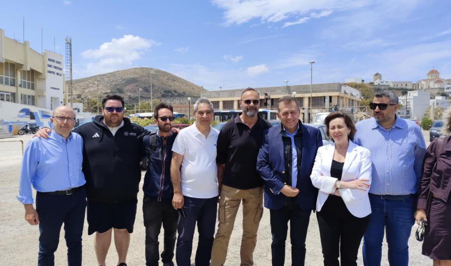 Σε συνέχεια της συνάντησης που είχε την Παρασκευή στο γραφείο του στην Αθήνα, με τον δήμαρχο, Αλέξη Αθανασίου, καθώς επίσης τους αντιδημάρχους Οικονομικών και Αθλητισμού, αλλά και Τεχνικών Υπηρεσιών, Δημήτρη Κοσμά και Φραγκίσκο Βακόνδιο, αντίστοιχα, ο κ. Βρούτσης μετέβη - μία μέρα μετά - στην πρωτεύουσα των Κυκλάδων, ώστε να προβεί σε αυτοψία των υποδομών.
