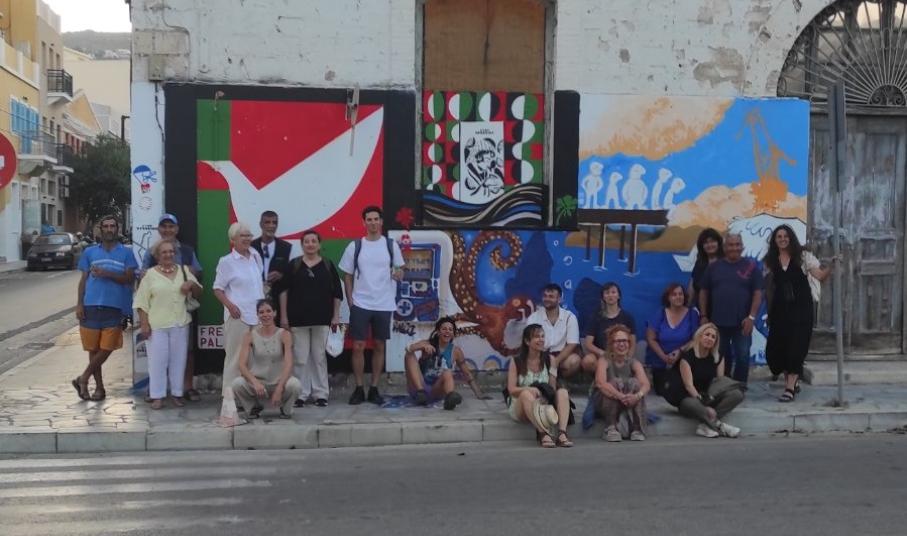 Τη 2η ημέρα, ακολούθησε περιήγηση σε τοιχογραφίες στην Ερμούπολη (Νεώριο, Ταρσανάς, Αθλητικό Κέντρο «Βικέλας», Γήπεδο Ε.Π.Σ., Κ.Ε.ΠΕ.Α., κ.ά.), ενώ το εργαστήριο κορυφώθηκε με τη συλλογική δημιουργία ενός έργου street art, εμπνευσμένου από την έννοια της νησιωτικότητας και της συνεργασίας.