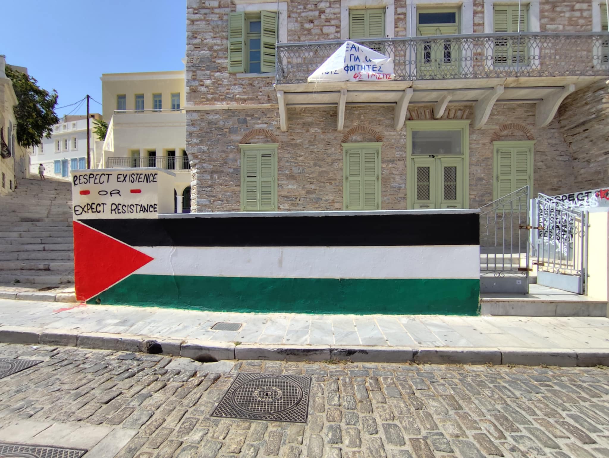 Την κάθετη διαφωνία τους με την αισθητική υποβάθμιση του ιστορικού κτηρίου που στεγάζεται το Πανεπιστημιακό Τμήμα της Σύρου, στο κέντρο της Ερμούπολης, εξέφρασαν αιρετά πρόσωπα, χθες στη Δημοτική Επιτροπή, με αφορμή τη δημιουργία σε μορφή γκράφιτι της παλαιστινιακής σημαίας, επάνω σε αρκετά μέτρα τοίχου.