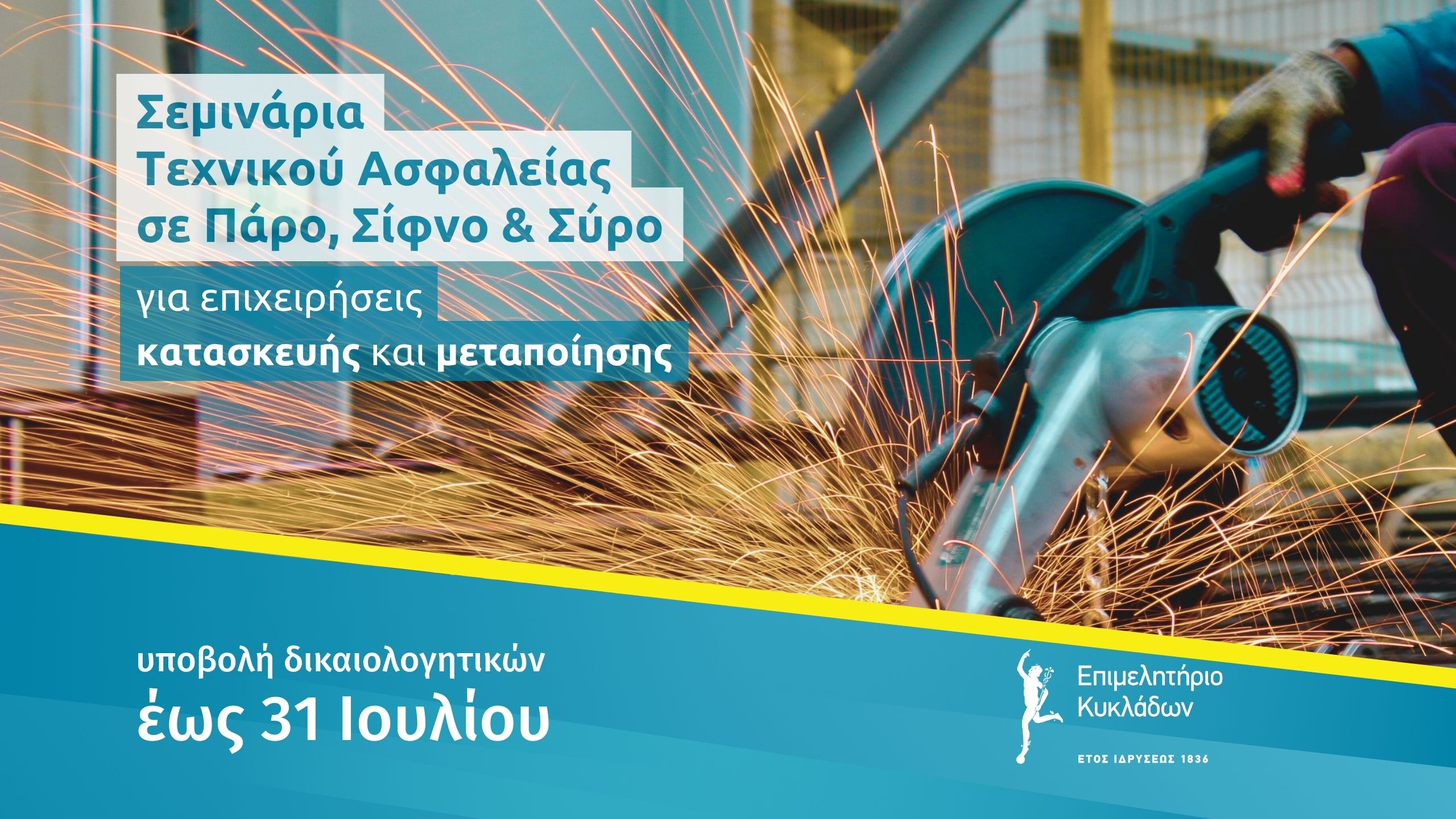 Ως τις 31 Ιουλίου 2025 υπάρχει η δυνατότητα υποβολής ενδιαφέροντος για τα σεμινάρια Τεχνικού Ασφαλείας που θα πραγματοποιηθούν μόνο με φυσική παρουσία είτε τον Νοέμβριο 2025 είτε μετά τον Μάρτιο του 2026.