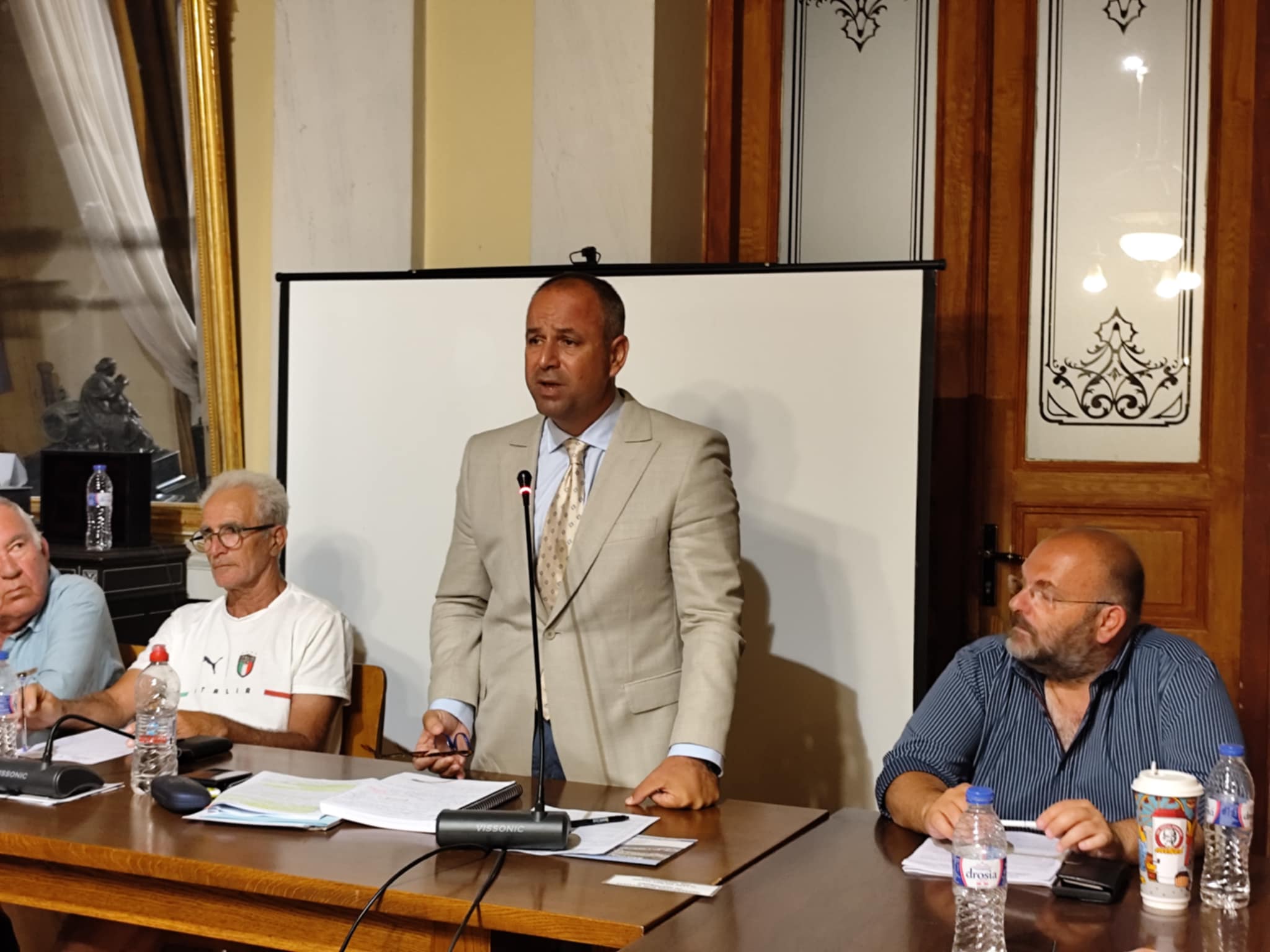 “Μπορείτε να μας πείτε τι γίνεται επιτέλους; Ακούμε συνέχεια σκαλωσιές (σ.σ. για το Δημαρχείο), βλέπουμε και δεν έρχονται. Το κολυμβητήριο πάλι για τρεις μήνες θα έχουμε, υπάρχει θέμα να κλείσει η αίθουσα δίπλα. Βλέπουμε πως για την αίθουσα του βόλεϊ υπάρχει μία στασιμότητα πάλι, μην πάει στις καλένδες με άγονη δημοπρασία. Βλέπουμε το γήπεδο του μπάσκετ μετά την εξαγγελία του υπουργού και τη δημόσια δέσμευση ότι τα λεφτά έχουν μπει στο ταμείο του Δήμου, αλλά ακόμη δεν τα έχουμε δει πού βρίσκονται”, πρόσθεσε και απευθυνόμενος στον κ. Βακόνδιο, ανέφερε τα παρακάτω. “Θα αποκτήσετε επιτέλους βηματισμό; Θα αποκτήσετε επιτέλους εξωστρέφεια; Θα αποκτήσετε επιτέλους συνείδηση πολιτική και θα τιμήσετε επιτέλους την ψήφο των Συριανών; Ευχαριστώ”, δήλωσε στη συνεδρίαση.