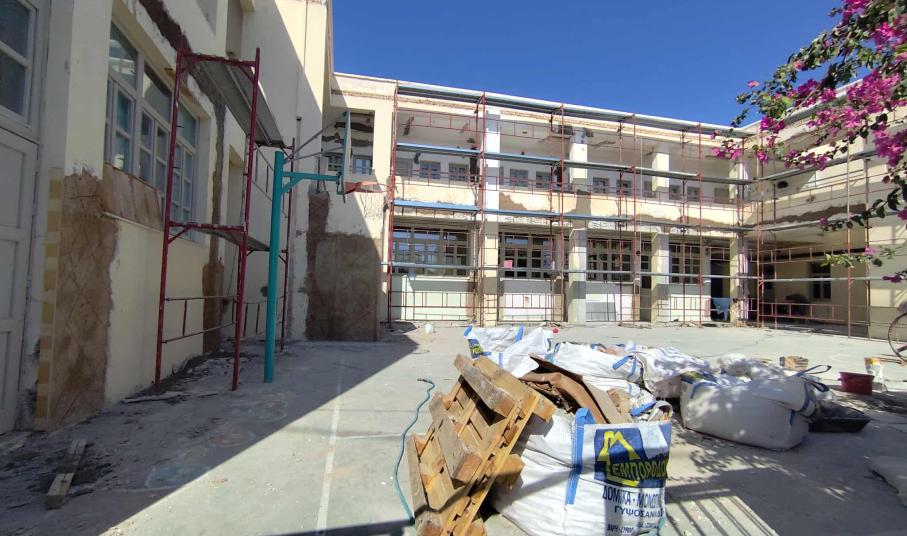Αρχικά, ο κ. Βακόνδιος γνωστοποίησε πως ήδη η εργολαβία των 70 χιλ. ευρώ είναι σε εξέλιξη. “Υπάρχει ενεργή χρηματοδότηση από την Περιφέρεια Ν. Αιγαίου για τη δ΄ φάση των εργασιών στις σχολικές μονάδες, οπότε έχουν αρχίσει οι εργασίες στο 3ο Δημοτικό Σχολείο και Νηπιαγωγείο Ερμούπολης. Οι παρεμβάσεις άρχισαν από την αυλή και είναι όλο το κτήριο μπροστά με σκαλωσιές. Προσπάθειά μας είναι να προλάβουμε την έναρξη της σχολικής χρονιάς. Άρα, η προθεσμία που έχουμε προς τον ανάδοχο είναι μέχρι την επόμενη Τετάρτη να έχει ολοκληρώσει τις παρεμβάσεις στην αυλή του σχολείου”, σημείωσε ο κ. Βακόνδιος, λέγοντας ακόμη πως “όλο το εξωτερικό κομμάτι του κτηρίου από την πλευρά της αυλής, θα είναι έτοιμο από την επόμενη εβδομάδα”.