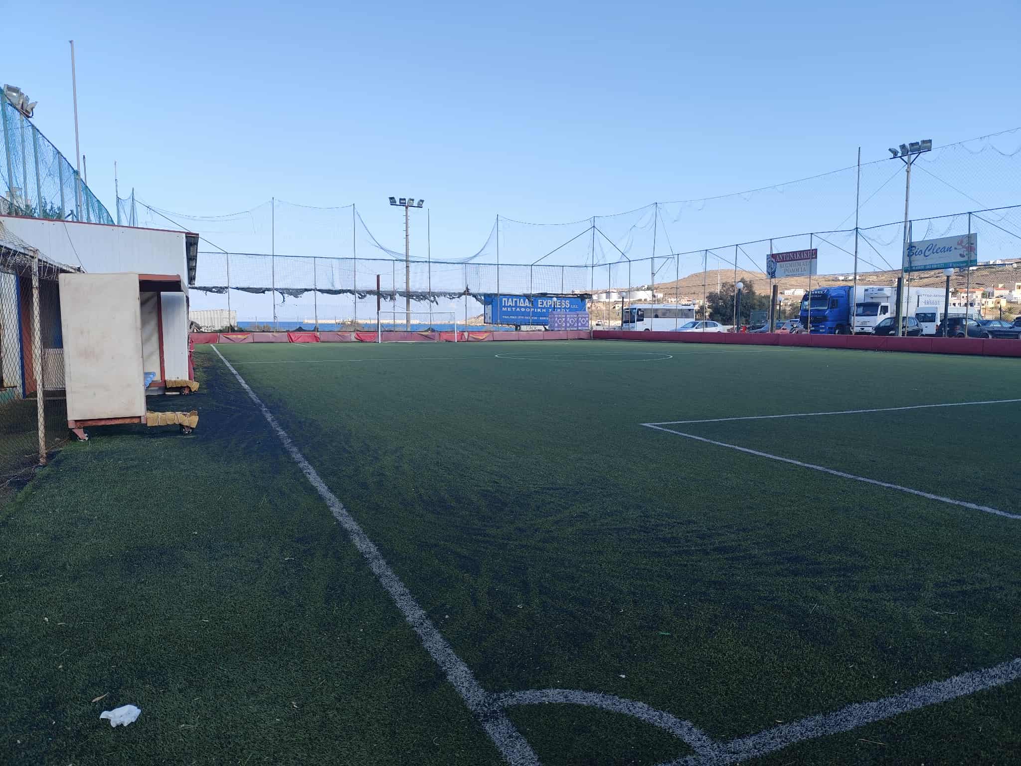 “Είναι το γήπεδο ποδοσφαίρου συνολικού εμβαδού 1.380 τ.μ., με αποδυτήρια εμβαδού 76,32 τ.μ., και ένα γραφείο 10 τ.μ.. Θεωρώ πως είναι μία καλή λύση για τη λειτουργία και αυτού του αθλητικού χώρου, σαν γήπεδο ποδοσφαίρου”, πρόσθεσε, γνωστοποιώντας πως ήδη έχουν γίνει κρούσεις στη Δημοτική Αρχή για τη λειτουργία του.