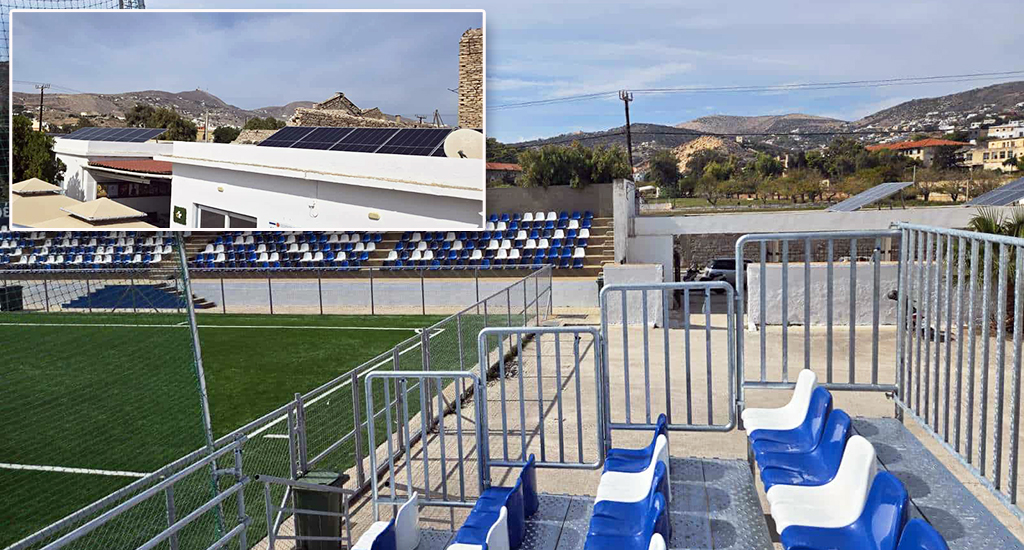 Σε συνέχεια των ανωτέρω, ρωτήθηκε να μεταφράσει σε οικονομικό επίπεδο, τι θα σημάνει η λειτουργία τους για το γήπεδο ποδοσφαίρου. “Αυτή τη στιγμή είναι περίπου 1.000 ευρώ τον μήνα τα οποία τα επωμίζονται τα Σωματεία. Αυτό το κόστος θα μπορούσαμε να το γλιτώσουμε. Ήταν 2.000 ευρώ τον μήνα, αλλά επειδή μπήκαν τα φωτιστικά LED με τη χρηματοδότηση της Περιφέρειας Ν. Αιγαίου, το κόστος έπεσε στο μισό”, σημείωσε, λέγοντας ακόμη πως “αλλά αν συνδεθούν και τα φωτοβολταϊκά, το κόστος θα πέσει κι άλλο. Δηλαδή θα μπορούμε να μιλάμε για 500 ευρώ για τα πάγια κλπ.  Είναι ένα σημαντικό έργο και πρέπει να προχωρήσει”.