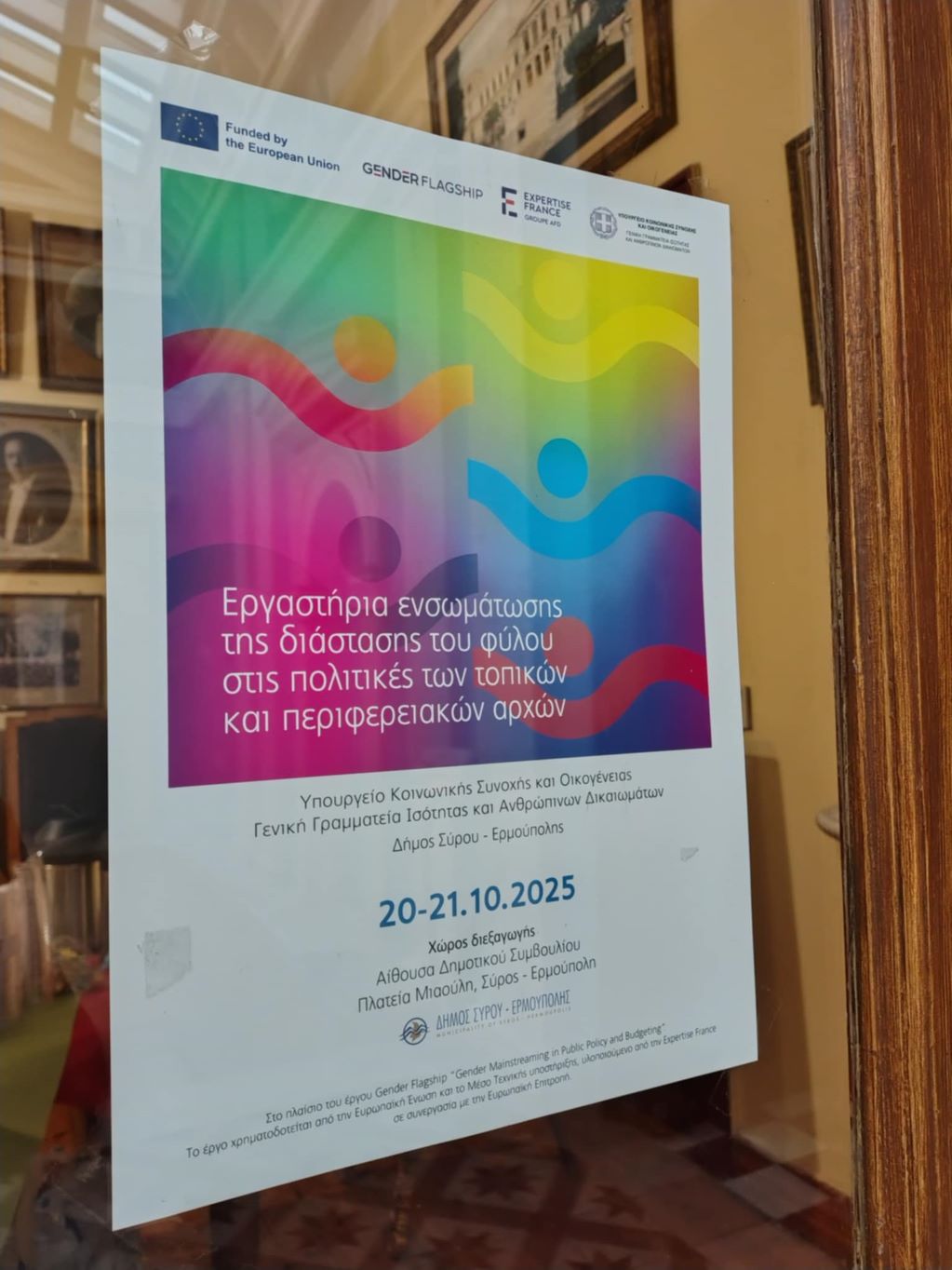 Τα “Εργαστήρια ενσωμάτωσης της διάστασης του φύλου στις πολιτικές και στους προϋπολογισμούς της τοπικής αυτοδιοίκησης” στον Δήμο Σύρου - Ερμούπολης, αποτελούν την πρώτη δραστηριότητα με φυσική παρουσία του προγράμματος Gender Flagship–GAP – Ελλάδα, τοπικό επίπεδο. Ανταποκρίνονται άμεσα στις ανάγκες που εντοπίστηκαν από την IDA, ιδίως στην περιορισμένη θεσμική γνώση σχετικά με το GM και τα εργαλεία του (GEP, GRB, GIA), στις ασύμμετρες ανάγκες μεταξύ των Δήμων και Περιφερειών και στην ανάγκη για πρακτική, συμμετοχική καθοδήγηση.