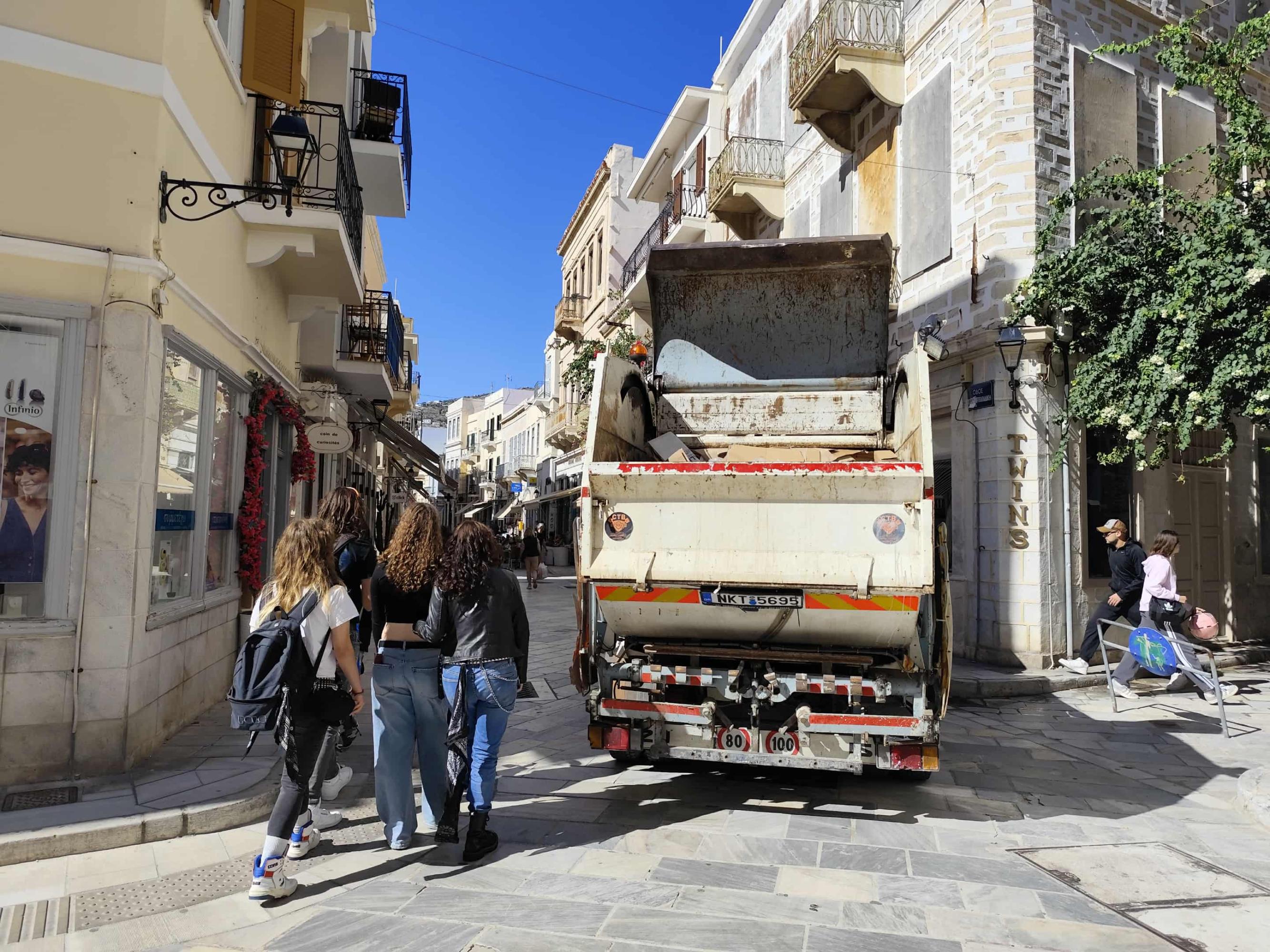 “Από την πρώτη ημέρα που ανέλαβε η εταιρεία στις 6 Οκτωβρίου, έχουμε έρθει σε επαφή με τον Εμπορικό Σύλλογο. Επειδή όντως ήταν νωρίς και το καλοκαίρι περνούσε ίσως και 12.00, βρήκαμε μία χρυσή τομή. Είπαμε να περνάει τους χειμερινούς μήνες στις 12.30 από την οδό Χίου που εκεί το φορτηγάκι περιμένει για μισή ώρα στη συμβολή με την οδό Σταματίου Πρωίου, για να πάρει όσα ανακυκλώσιμα έχει η περιοχή. Μετά, στις 13.00 εισέρχεται στον πεζόδρομο για να παίρνει τα ανακυκλώσιμα από τα δύο σημεία, στου Σκλαβενίτη και στην οδό Ανάφης”, υπογράμμισε, λέγοντας πως “ο Εμπορικός Σύλλογος Σύρου συμφωνεί με αυτό το ωράριο για τους χειμερινούς μήνες”.
