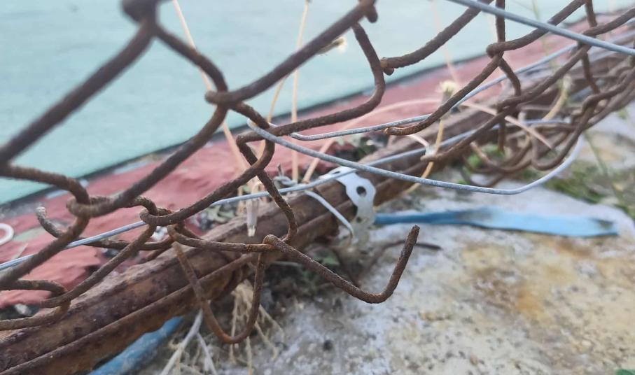 Παράλληλα, η περίφραξη βρίσκεται στον… αέρα στο τέλος του γηπέδου, με τους αρμόδιους να φαίνεται να το έχουν δέσει εξαιρετικά πρόχειρα για να σταθεροποιηθεί.