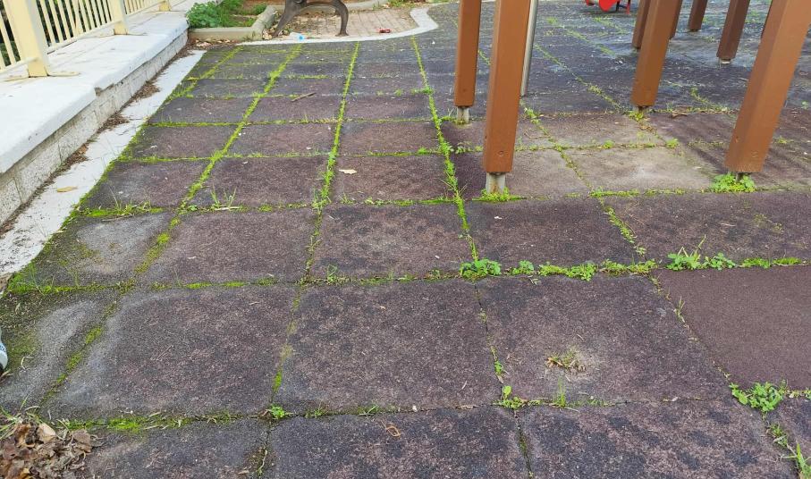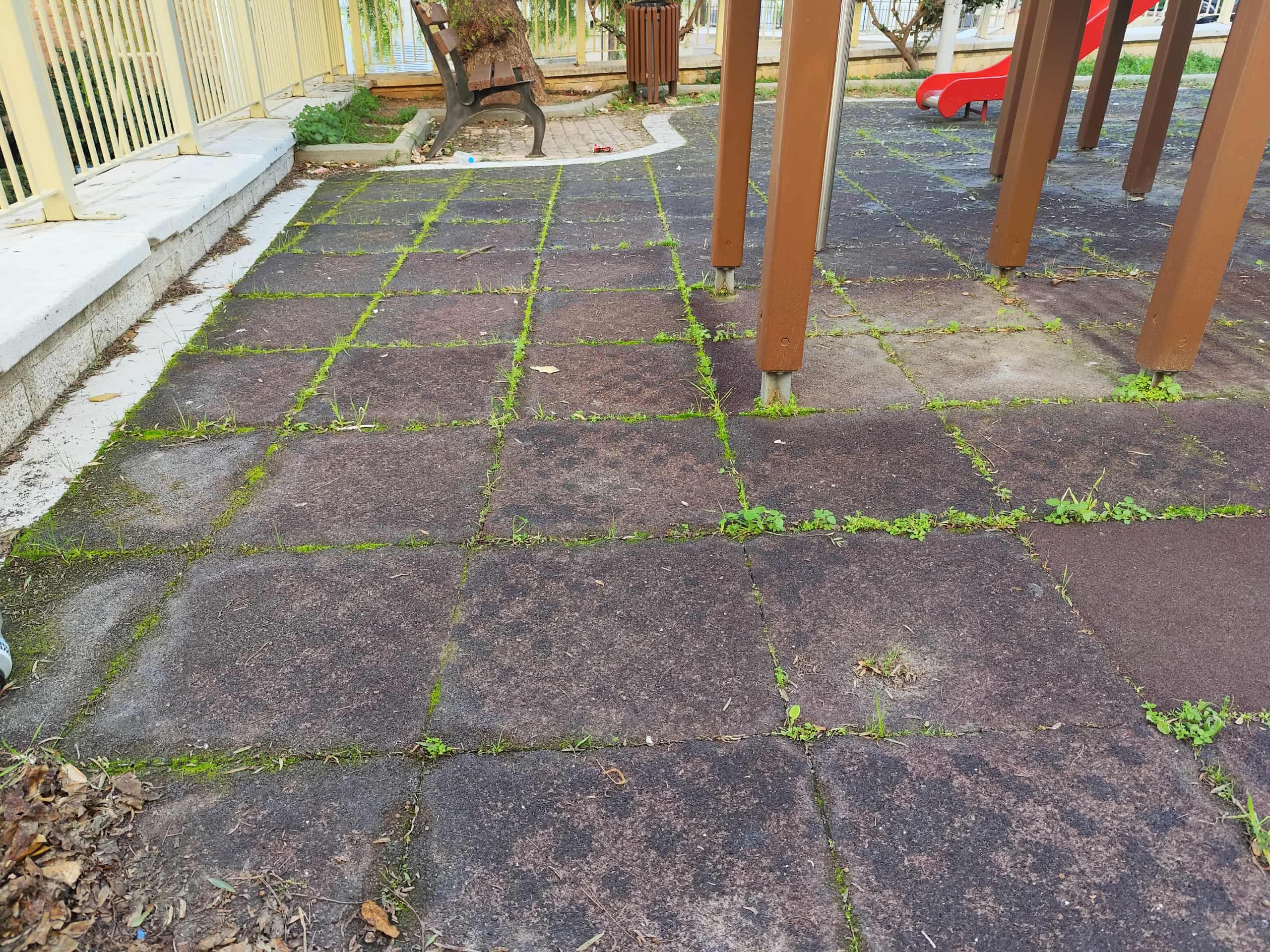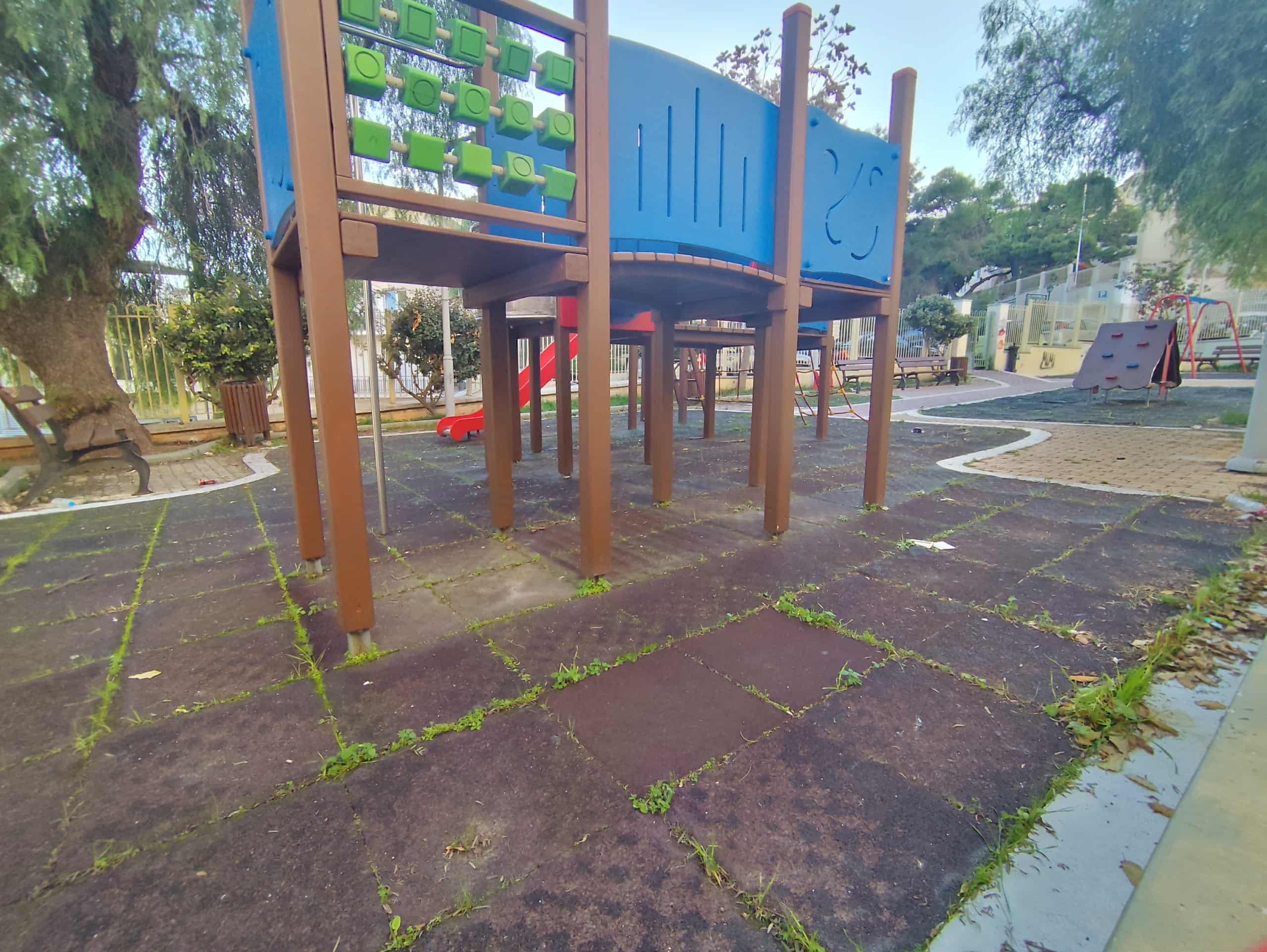 Σε συνέχεια των ανωτέρω, πρέπει να σημειωθεί πως σε ό,τι αφορά την παιδική χαρά της Μεταμόρφωσης η βασική και κύρια εκκρεμότητα είναι η αντικατάσταση του δαπέδου, που δεν έχει προχωρήσει μέχρι σήμερα, καθώς αυτό που είχε τοποθετηθεί ήταν ακατάλληλο. Σήμερα, μάλιστα, έχουν φυτρώσει και χόρτα και ως εκ τούτου θα πρέπει να αλλαχθεί. Η εικόνα του δαπέδου βέβαια, περιήλθε σε αυτή την κατάσταση καθώς υπάρχει πλήρης εγκατάλειψη και δεν υπάρχει περιποίηση και φροντίδα. Το ειδικό δάπεδο είναι γύρω στα 40 τ.μ..