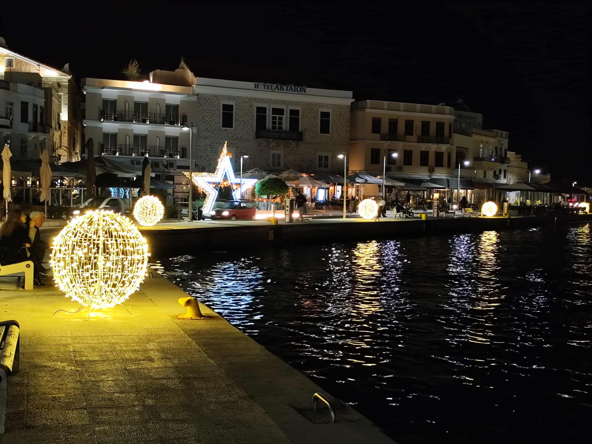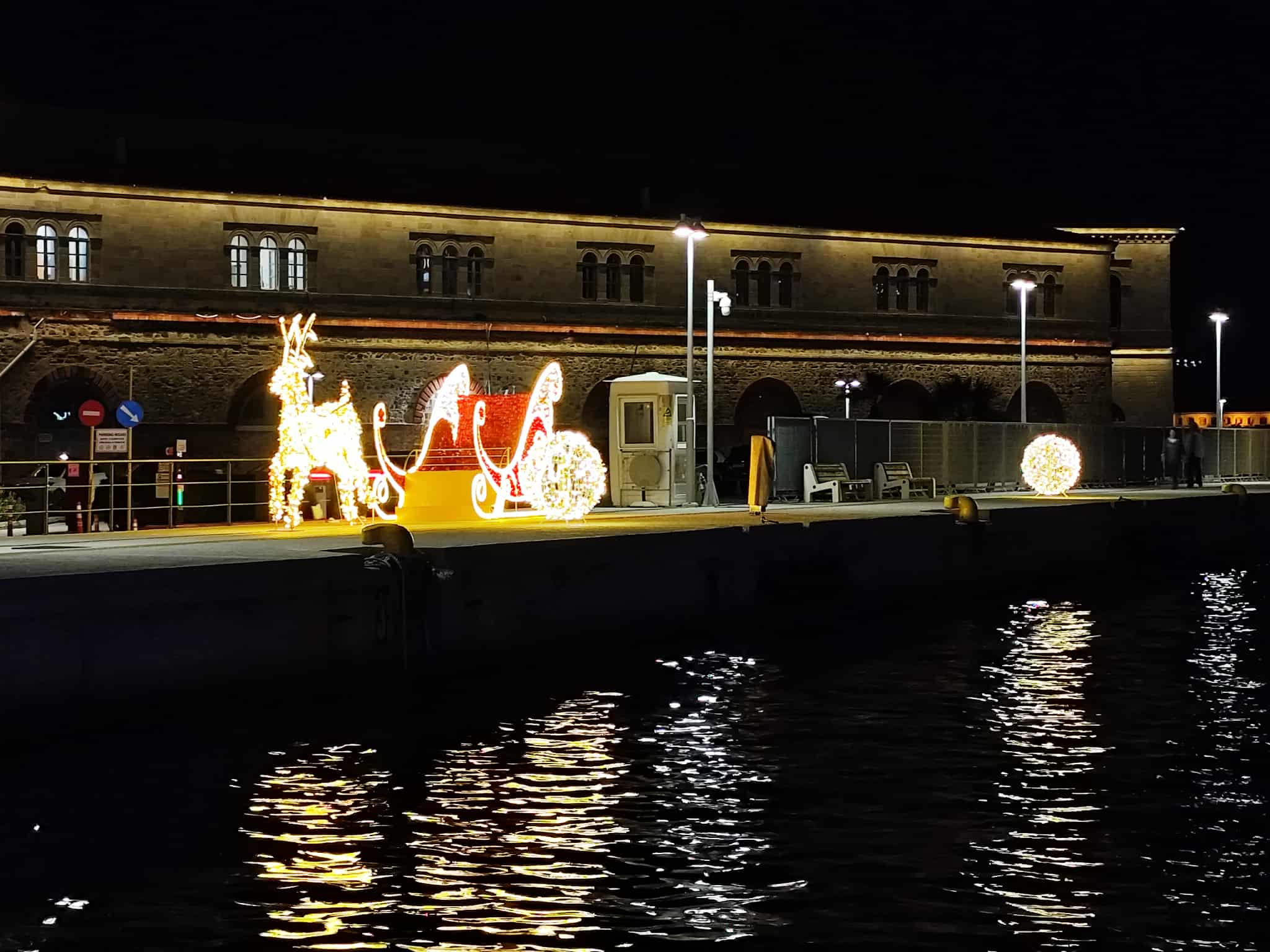 Φωτίστηκε στον… ρυθμό των Χριστουγέννων το παραλιακό μέτωπο της Ερμούπολης σήμερα το απόγευμα, μετά από φροντίδα και ενέργειες του Λιμενικού Ταμείου Σύρου, ενόψει των γιορτών.