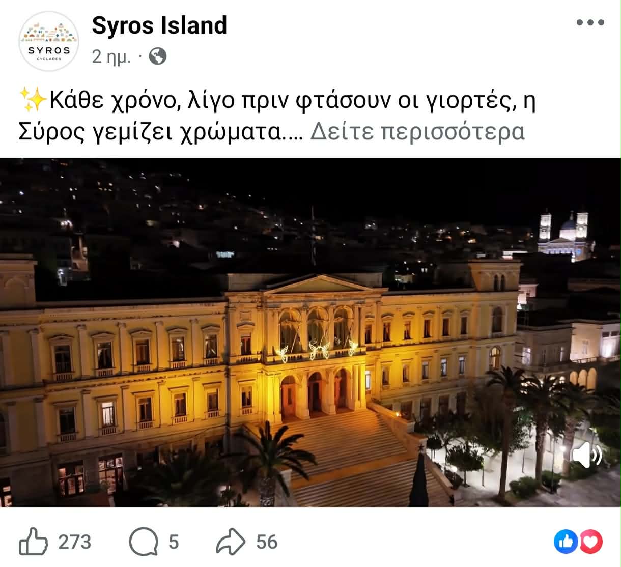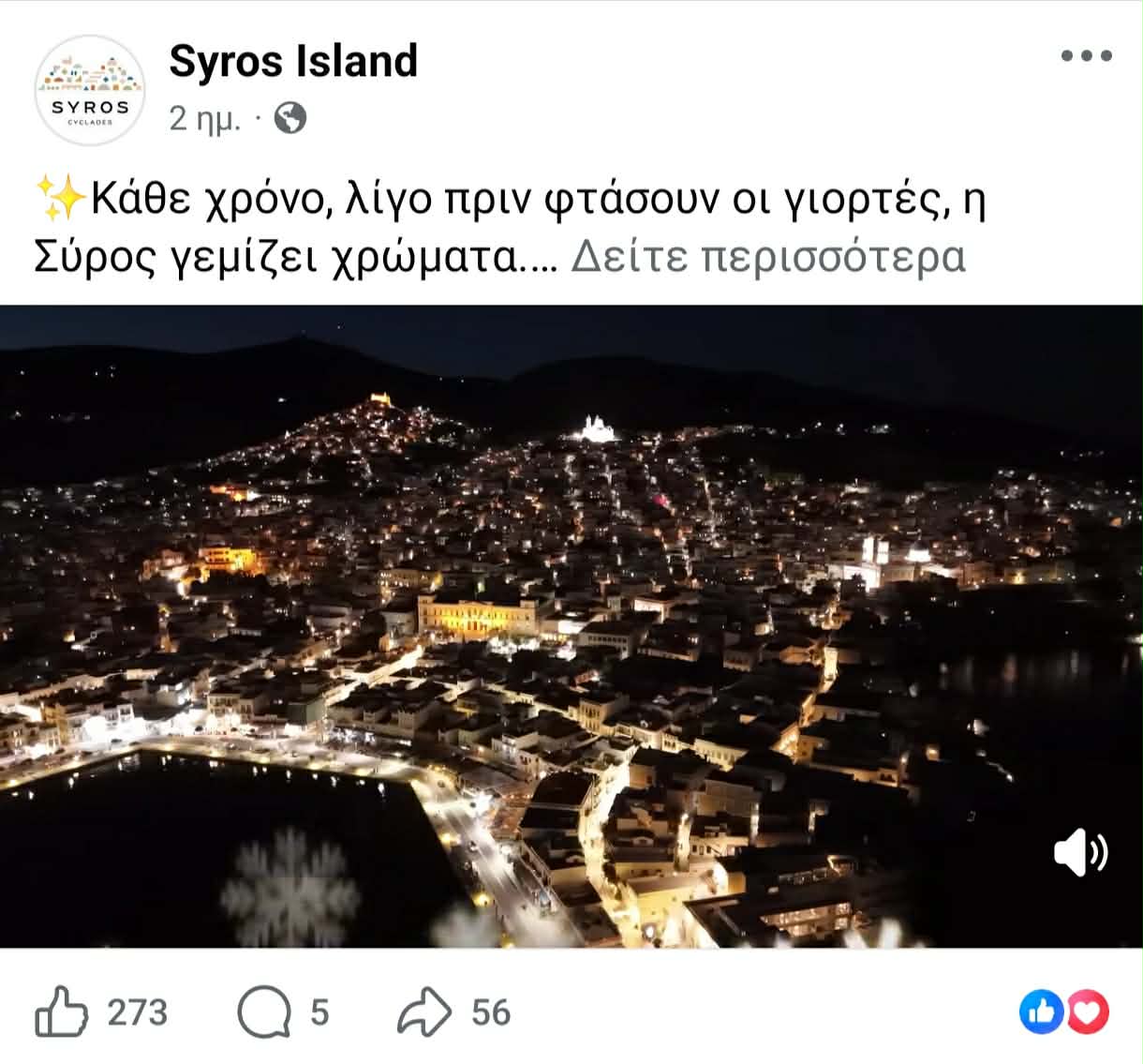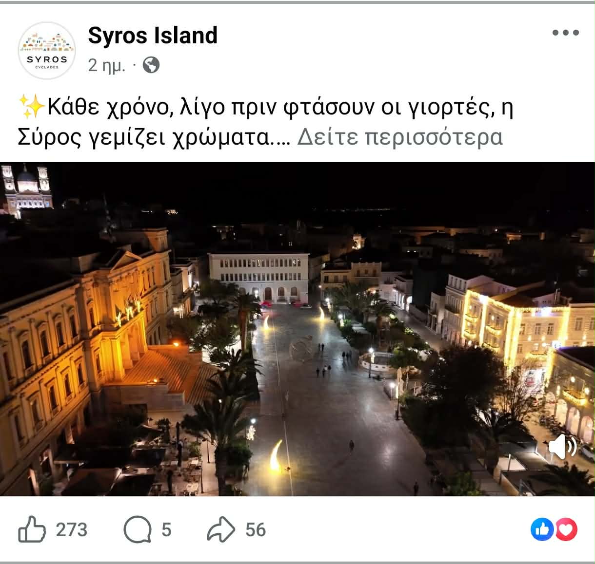 Επισκεψιμότητα από τη Θεσσαλονίκη, καθώς επίσης και τις γύρω περιοχές στοχεύει να κερδίσει η Σύρος για την εορταστική περίοδο των Χριστουγέννων, μέσω αξιοποίησης των social media, προβάλλοντας ήδη στολισμένο το νησί, όπως όμως και τις πολιτιστικές εκδηλώσεις του.