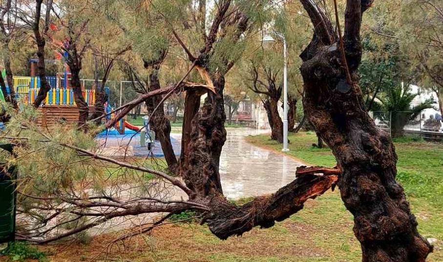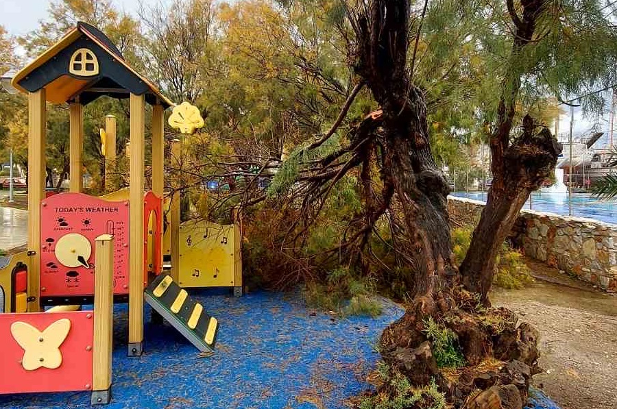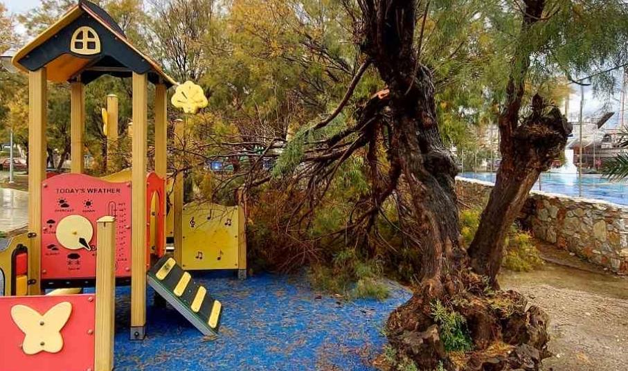 Σύρος: Κλειστή η παιδική χαρά στο Αθλητικό Κέντρο - Έσπασαν κλαδιά από δέντρα