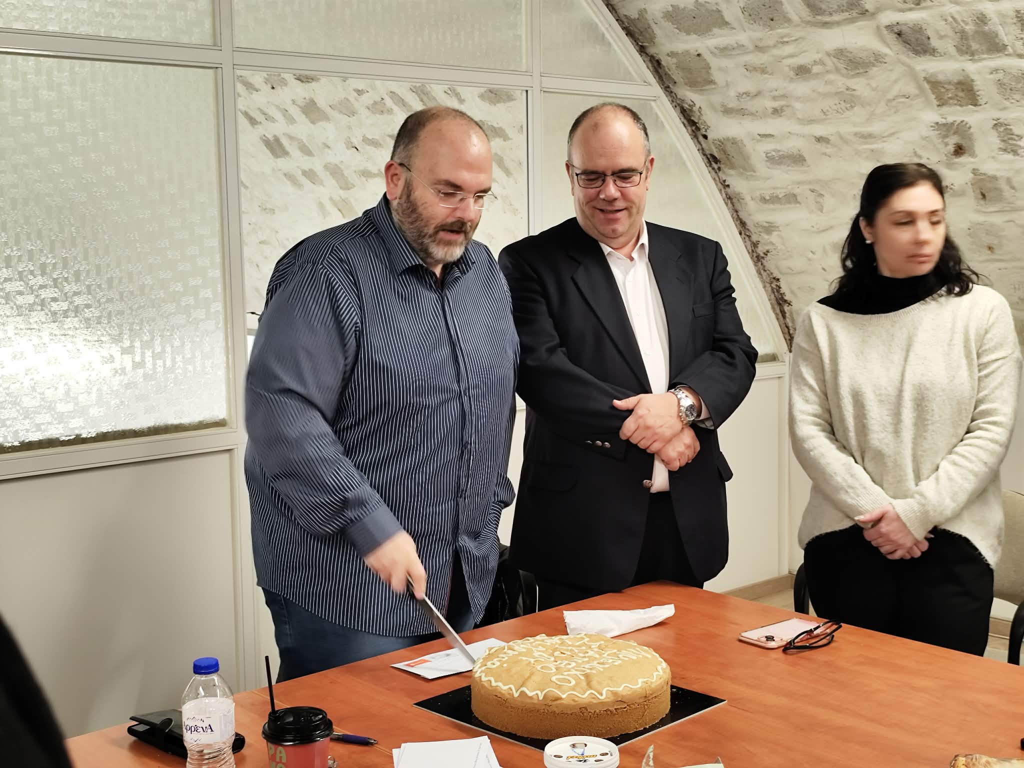 Στη κοπή της πίτας, συμπεριελήφθησαν και οι εκπρόσωποι του Τύπου, με τη δημοσιογράφο της "Κοινής Γνώμης", Άννα Τερέζα Δαλμυρά να κερδίζει το φλουρί.