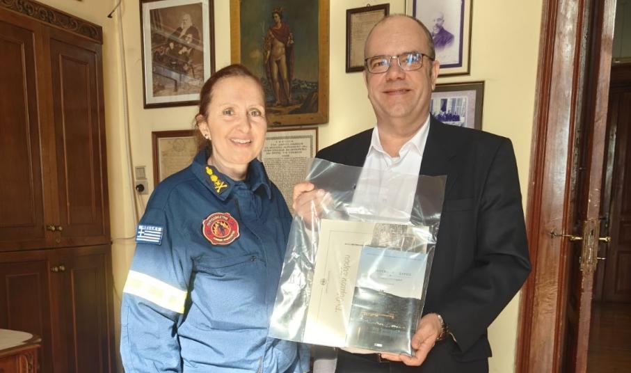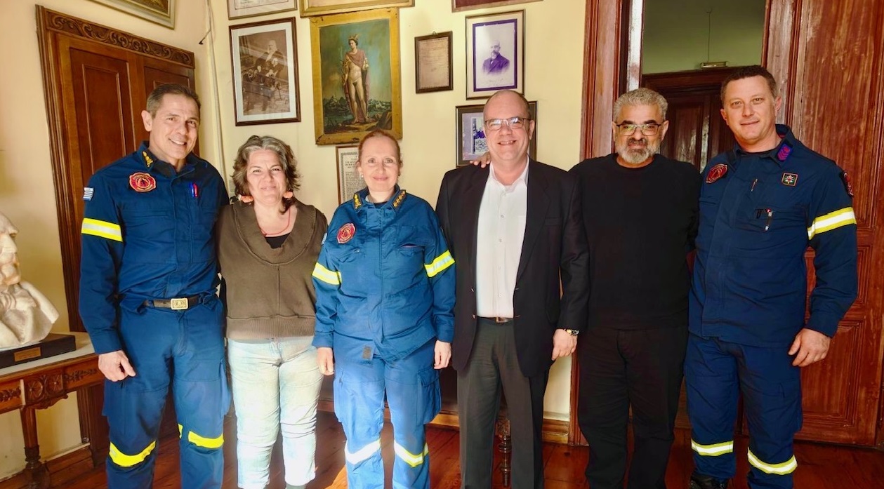 O δήμαρχος Σύρου – Ερμούπολης, Αλέξανδρος Αθανασίου υποδέχθηκε σήμερα, Τρίτη 3 Φεβρουαρίου 2026, στο γραφείο του, τη νέα διοικήτρια της ΔΙ.Π.Υ.Ν. Κυκλάδων, πύραρχο Γεωργία Τσάφου, καθώς και τον διοικητή της Πυροσβεστικής Υπηρεσίας Ερμούπολης, αντιπύραρχο Παναγιώτη Μαυραγάνη, με αφορμή την ανάληψη των καθηκόντων της.