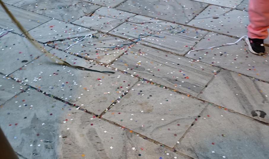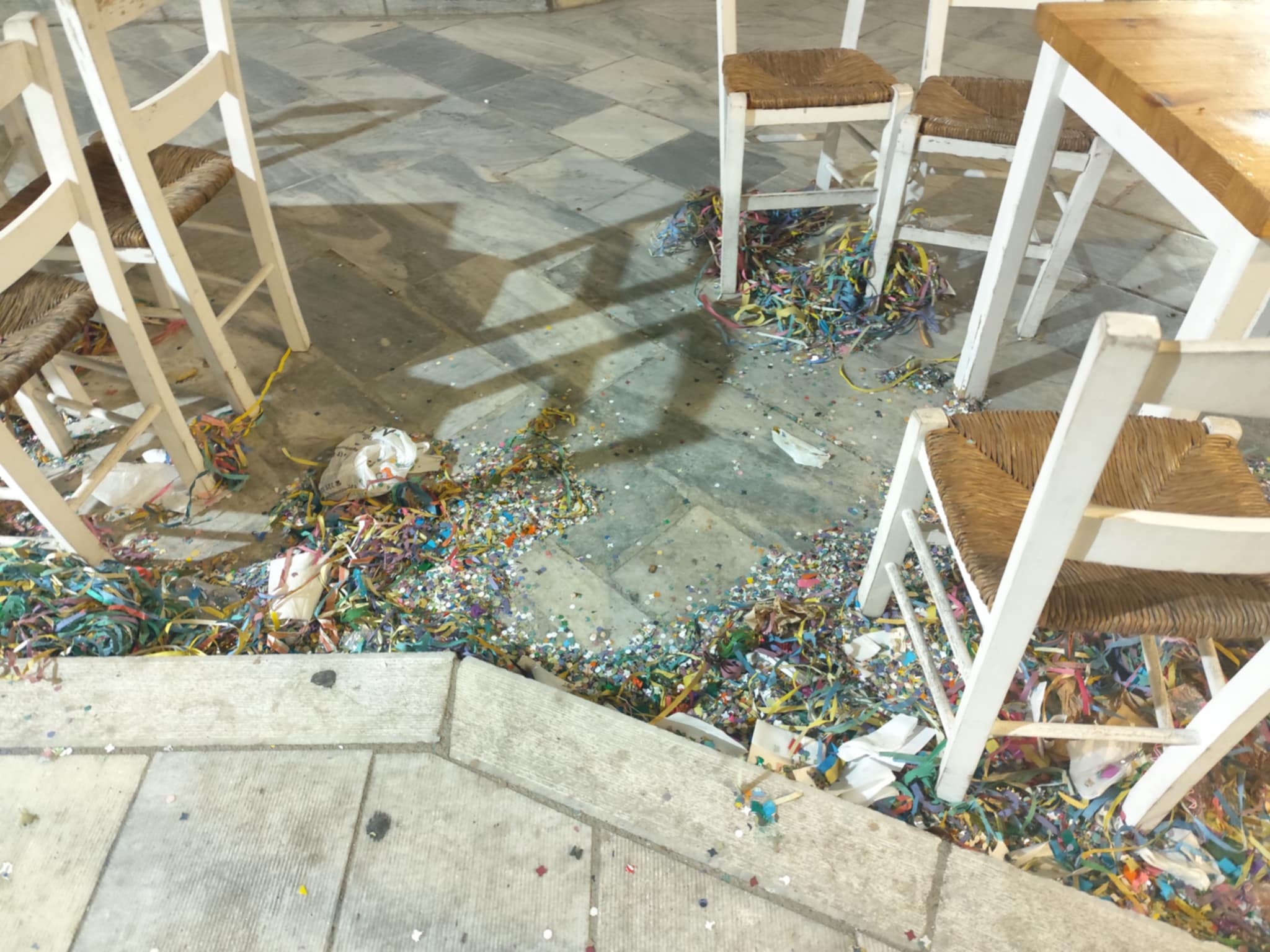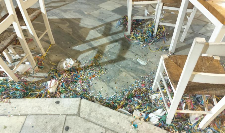 Τα συνεργεία καθαριότητας του Δήμου Σύρου - Ερμούπολης, αλλά και εθελοντές της Κοινότητας του Μάννα βρέθηκαν άμεσα στους δρόμους και μέσα σε χρόνο μηδέν απομάκρυναν ότι άφησαν πίσω τους οι καρναβαλιστές.