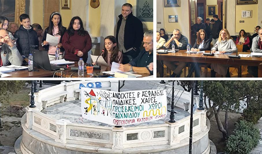 Η αυτονόητη απαίτησή τους, για να έχουν κατάλληλες παιδικές χαρές μεταφέρθηκε με τον πιο ουσιαστικό τρόπο στην προχθεσινή συνεδρίαση του Δημοτικού Συμβουλίου, όπου μαθητές της ΣΤ΄ τάξης του 4ου Πειραματικού Δημοτικού Σχολείου Ερμούπολης παρουσίασαν μία έρευνα για τις παιδικές χαρές, με σαφή συμπεράσματα. Την έρευνα την πραγματοποίησαν υπό την καθοδήγηση της δασκάλας τους, Νικολέτας Παπαδημητρίου και επί της ουσίας, μετέφεραν το μήνυμα στη Δημοτική Αρχή πως, ως παιδιά, δεν απολαμβάνουν τα αυτονόητα δικαιώματά τους στο νησί.