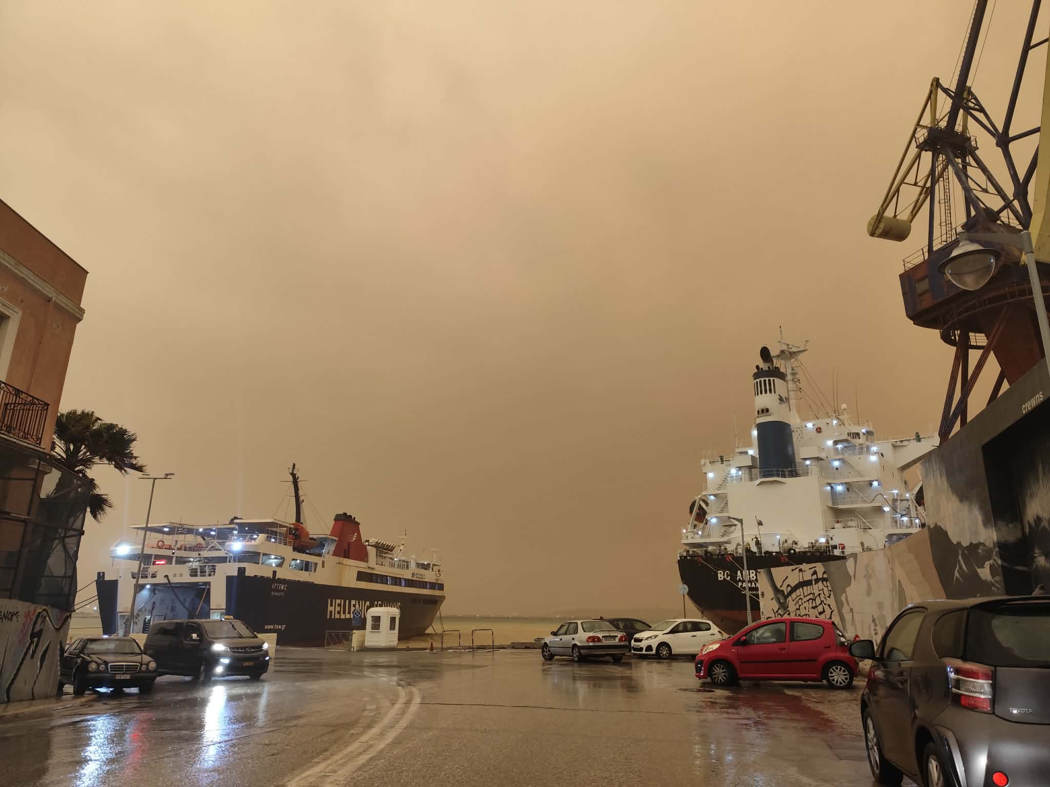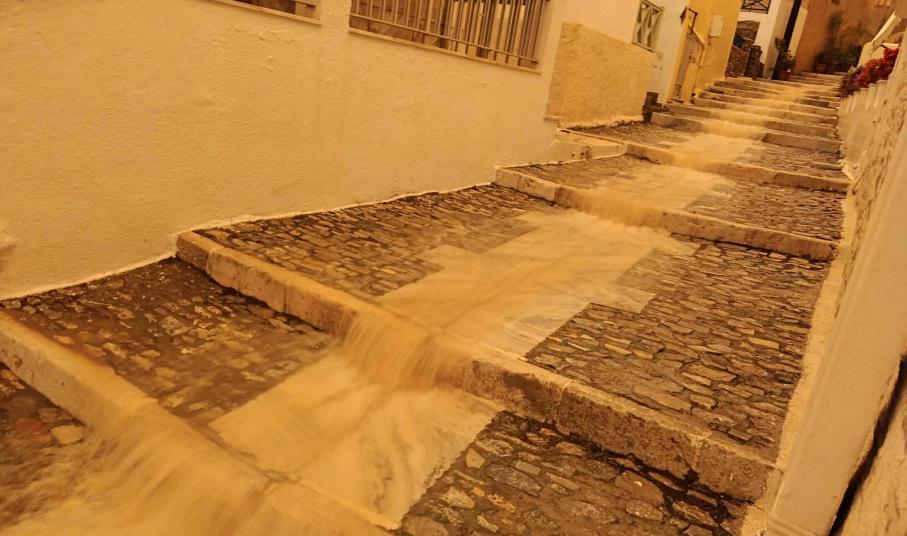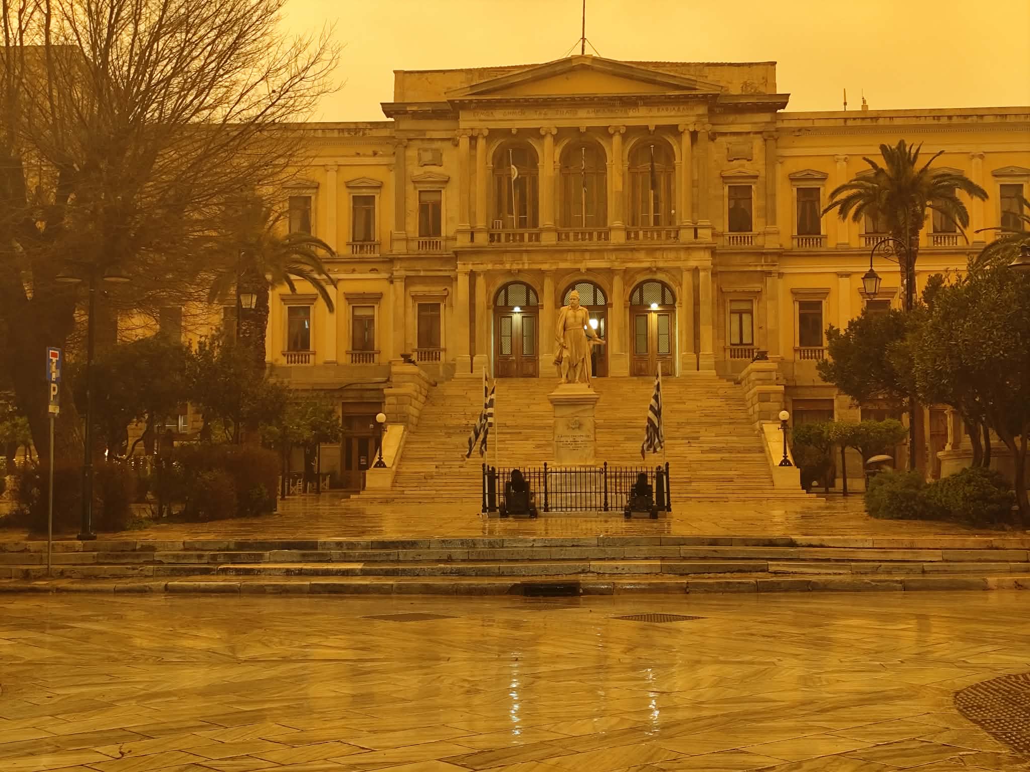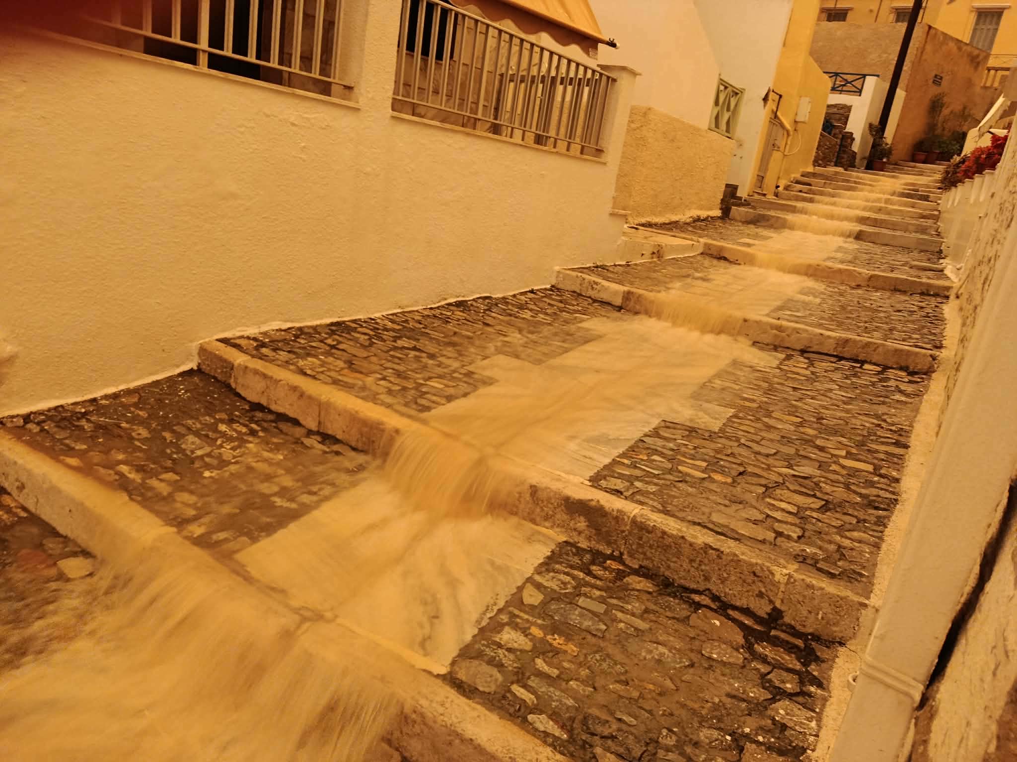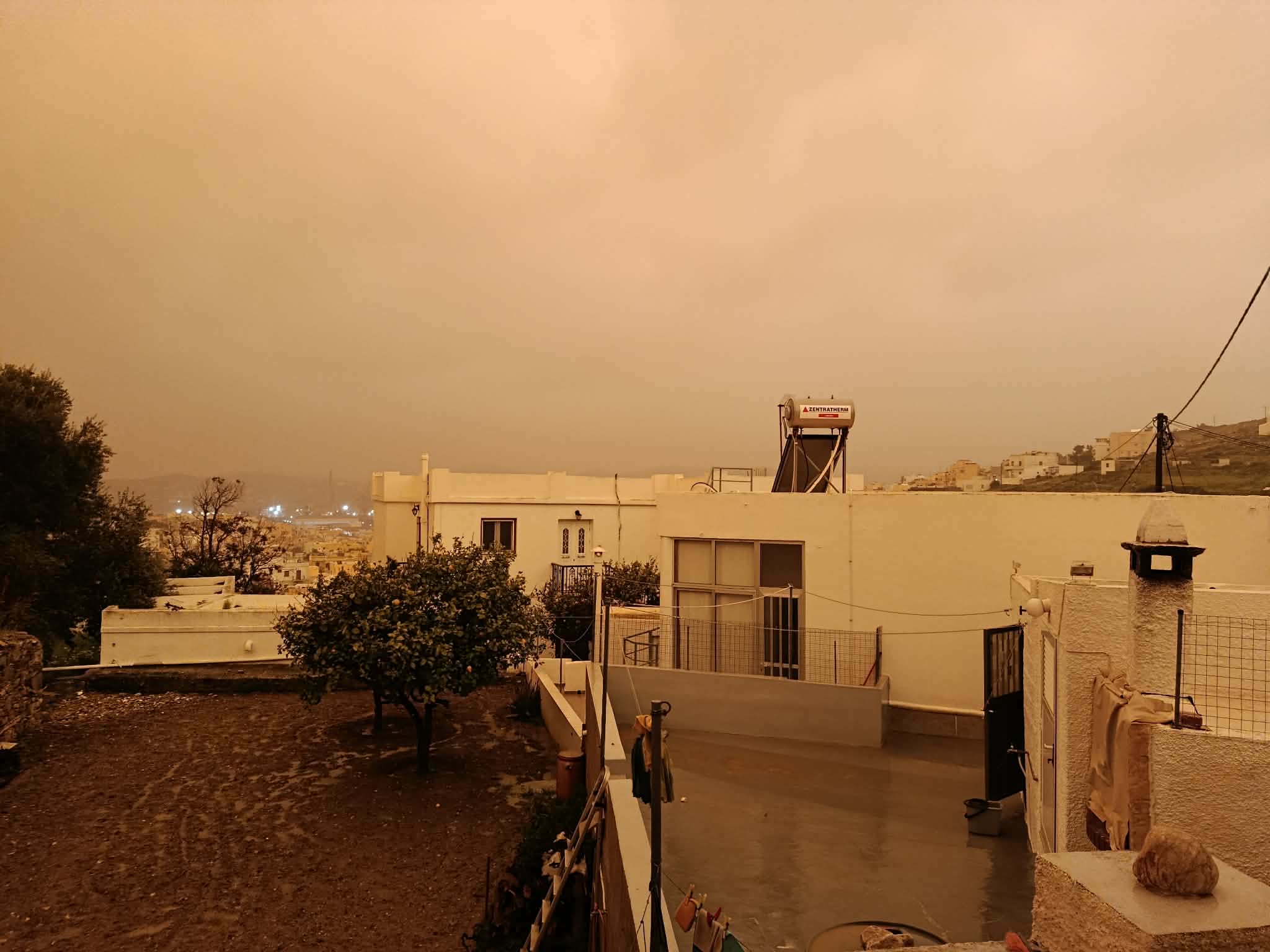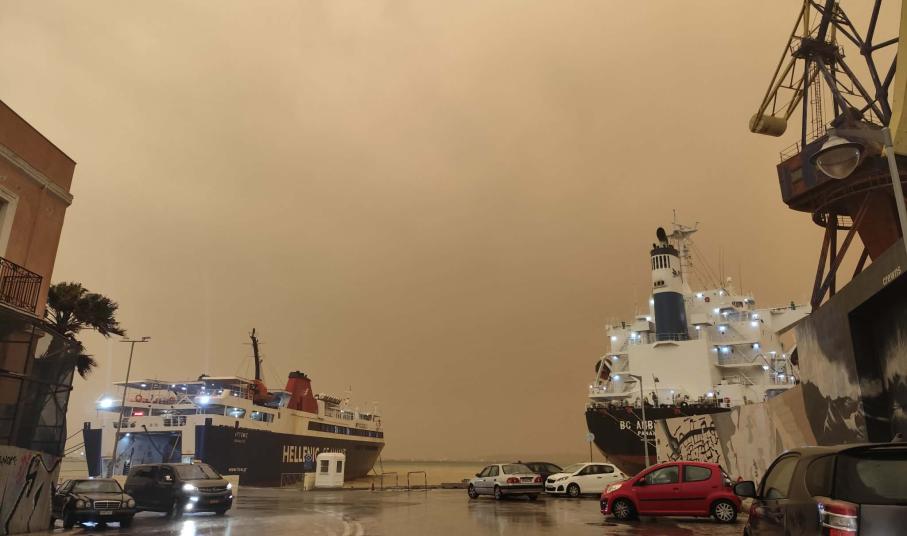 Αποτέλεσμα της συγκέντρωσης υψηλών ποσοτήτων αιωρουμένων σωματιδίων είναι πως η πρωτεύουσα των Κυκλάδων έχει πάρει χρώμα… πορτοκαλί. Παράλληλα, σε εξέλιξη είναι και η κακοκαιρία Erminio, με τη βροχόπτωση να είναι έντονη και σταθερή όλες τις τελευταίες ώρες.