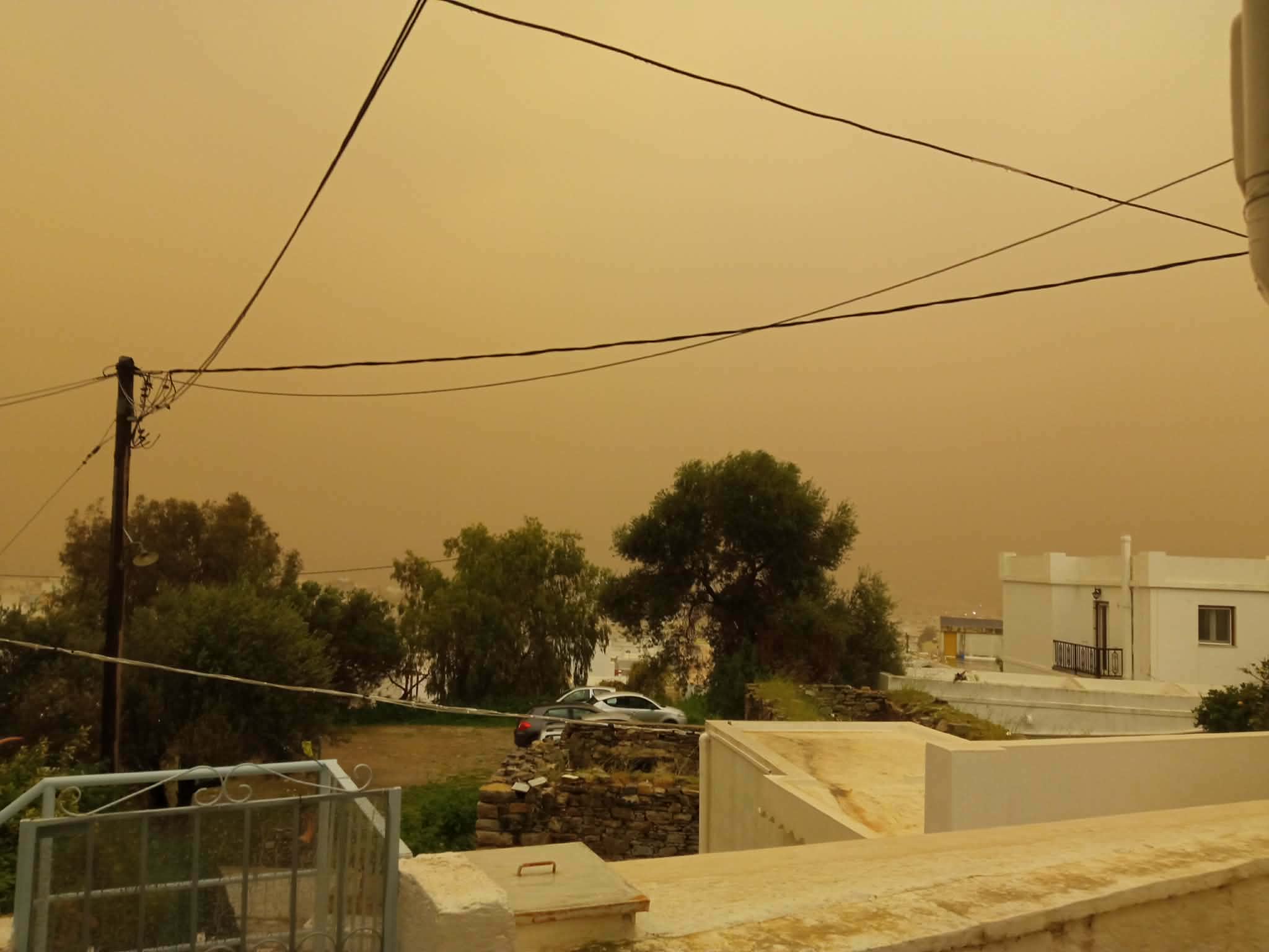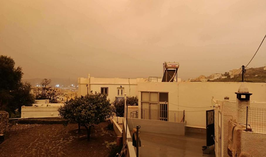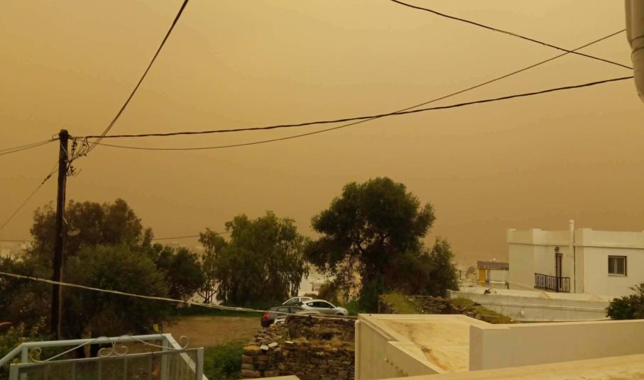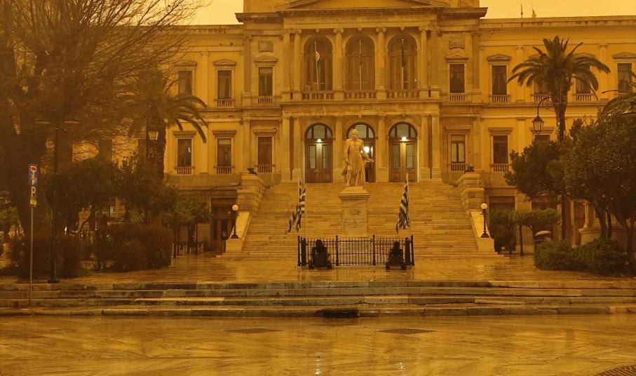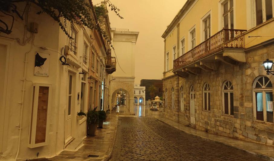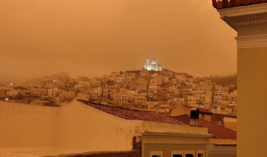 Πρωτοφανείς εικόνες καταγράφονται στο νησί της Σύρου σήμερα, καθώς από νωρίς το απόγευμα και μετά, όλες οι περιοχές δείχνουν να έχουν “πνιγεί” από την αφρικανική σκόνη.