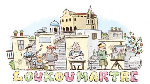 "Εμπνευστής του σκίτσου της Loukoumartre είναι ο κομίστας Τάσος Μαραγκός, που πλέον ζει και δημιουργεί στη γενέτειρά του, τη Σύρο, αποτυπώνει με εξαιρετικό τρόπο το ονειρεμένο σκηνικό της Loukoumartre που προετοιμάζουμε όλο γλύκα και άρωμα τριαντάφυλλου, μαστίχας και περγαμόντου. Βασικός στόχος όλων των δράσεών μας είναι η ανάδειξη και αξιοποίηση του πιο δημιουργικού κομματιού της τοπικής μας κοινωνίας. Γιατί εκτός από σημαντική πολιτιστική κληρονομιά, τα νησιά μας διαθέτουν και ιδιαίτερα αξιόλογη σύγχρονη καλλιτεχνική δημιουργία"