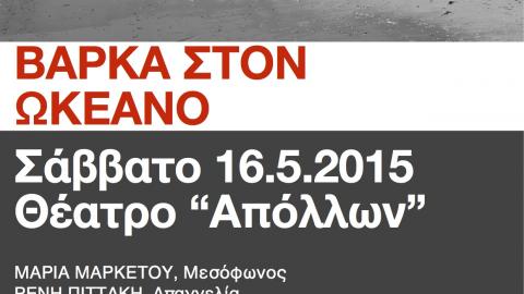 Τέλος, στο πλαίσιο της συνεργασίας του Δήμου Σύρου – Ερμούπολης με την Εθνική Λυρική Σκηνή, θα παρουσιαστεί στην πρωτεύουσα των Κυκλάδων η μουσικοθεατρική παράσταση “Βάρκα στον Ωκεανό”. Η μεσόφωνος της Λυρικής σκηνής Μαρία Μαρκέτου, η μεγάλη πρωταγωνίστρια του ελληνικού θεάτρου Ρένη Πιττάκη και ο γνωστός πιανίστας και συνθέτης Κίμων Μαραγκουδάκης σε μία παράσταση σε σκηνοθεσία του Ηλία Κουντή. Ένα μουσικοθεατρικό θέαμα με θέμα τη θάλασσα. όπως παρουσιάζεται μέσα από μουσικά κομμάτια για πιάνο, άριες και τραγούδια των Σατί, Σούμπερτ, Βάγκνερ, Φορέ, Μάντζαρου, Μπιζέ, Στράους, κ.α, καθώς και ποιήματα και αποσπάσματα θεατρικών και λογοτεχνικών κειμένων.