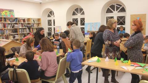 Για μία ακόμη χρονιά, η καρδιά των Χριστουγέννων χτύπησε στη φιλόξενη γωνιά της Δημοτικής Βιβλιοθήκης Σύρου – Ερμούπολης με παράλληλες δραστηριότητες για μικρά και μεγάλα παιδιά. Τις δεξιότητές τους στην καλλιτεχνική δημιουργία διπλώματος χαρτιού ανέπτυξαν παιδιά ηλικίας 6 - 12 ετών υπό την καθοδήγηση 10μελούς ομάδας εθελοντών. Στην τεχνική του οριγκάμι μύησαν τους συμμετέχοντες η δημοτική υπάλληλος Πόπη Κουμουτσάκου και ο εκπαιδευτικός κ. Χρήστος Κόλλιας. Σε δηλώσεις της στην «Κοινή Γνώμη», η κ. Κουμουτσάκου εξήγησε ότι στόχος αυτής της δράσης ήταν να φέρει κοντά τα παιδιά με την τέχνη της πλέξης και της χαρτοδιπλωτικής μέσα από την κατασκευή χειροποίητων έργων που μπορούν να στολίσουν στο σπίτι και το δωμάτιό τους. «Είμαι ερασιτέχνης καλλιτέχνης οριγκάμι και το κάνω καθαρά από προσωπική μου ευχαρίστηση, εκτιμώντας πως η τέχνη του διπλώματος του χαρτιού είναι το καλύτερο αγχολυτικό» ανέφερε χαρακτηριστικά, υπογραμμίζοντας ότι η ιδέα του γιορτινού εργαστηρίου έπεσε στο τραπέζι από την υπεύθυνη της Βιβλιοθήκης κ. Χαρούλα Σκαβάκη, η οποία έχει πολλάκις εκφράσει το θαυμασμό της για τα έργα που η κ. Κουμουτσάκου φτιάχνει και διακοσμεί στο γραφείο της στο Δήμο. «Τα παιδιά χαίρονται που βλέπουν πόσα πολλά μπορούν να φτιάξουν μόνο με ένα χαρτί και ζητούν την επανάληψη της δράσης ανά τακτά χρονικά διαστήματα» σημειώνουν οι εθελοντές.