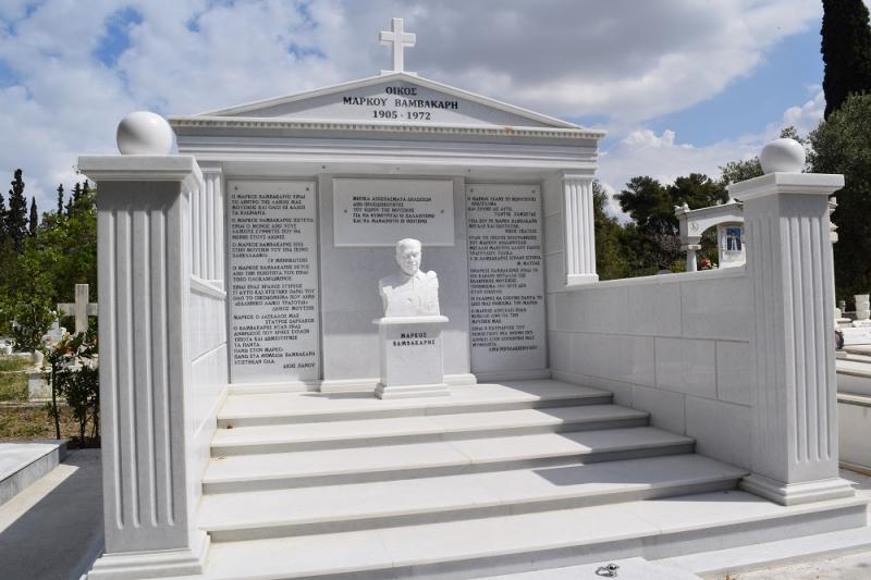 Σύμφωνα με πληροφορίες του ιδίου, οι εργασίες για τη δημιουργία του Οίκου Μάρκου Βαμβακάρη ξεκίνησαν πριν από δύο μήνες και ολοκληρώθηκαν πριν από 20 ημέρες με χρήματα της οικογενείας του γενάρχη του ρεμπέτικου στην Ελλάδα . «Συγγενείς του από την Αμερική έστειλαν περίπου το ποσό των 80.000 ευρώ για την ανέγερση αυτού του έργου - υπερπαραγωγή, που αναμφισβήτητα είναι το ωραιότερο μέσα στο 3ο Νεκροταφείο», τονίζει ο κ. Βαρθαλίτης.