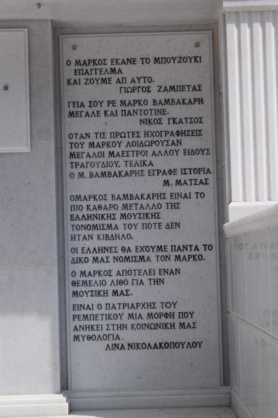 «Γεια σου ρε Μάρκο Βαμβακάρη, μεγάλε και παντοτινέ» (Νίκος Γκάτσος).
