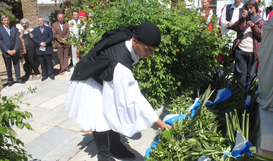 Τον ηρωισμό, τη γενναιότητα και τη μαχητικότητα των Ελλήνων, καθώς και τη διδαχή των ιστορικών γεγονότων για τις νεότερες γενιές υπογράμμισε στην ομιλία του, ο ιστορικός και μέλος του Συλλόγου Πελοποννησίων Σύρου, Σωτήρης Νικολακόπουλος.