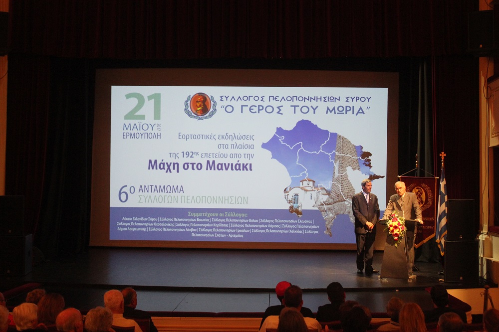Το 6ο Αντάμωμα Συλλόγων Πελοποννησίων στην Ερμούπολη, συνδιοργάνωσαν ο Σύλλογος Πελοποννησίων Σύρου “Ο Γέρος του Μωριά”, η Περιφέρεια Νοτίου Αιγαίου και ο Δήμος Σύρου – Ερμούπολης.
