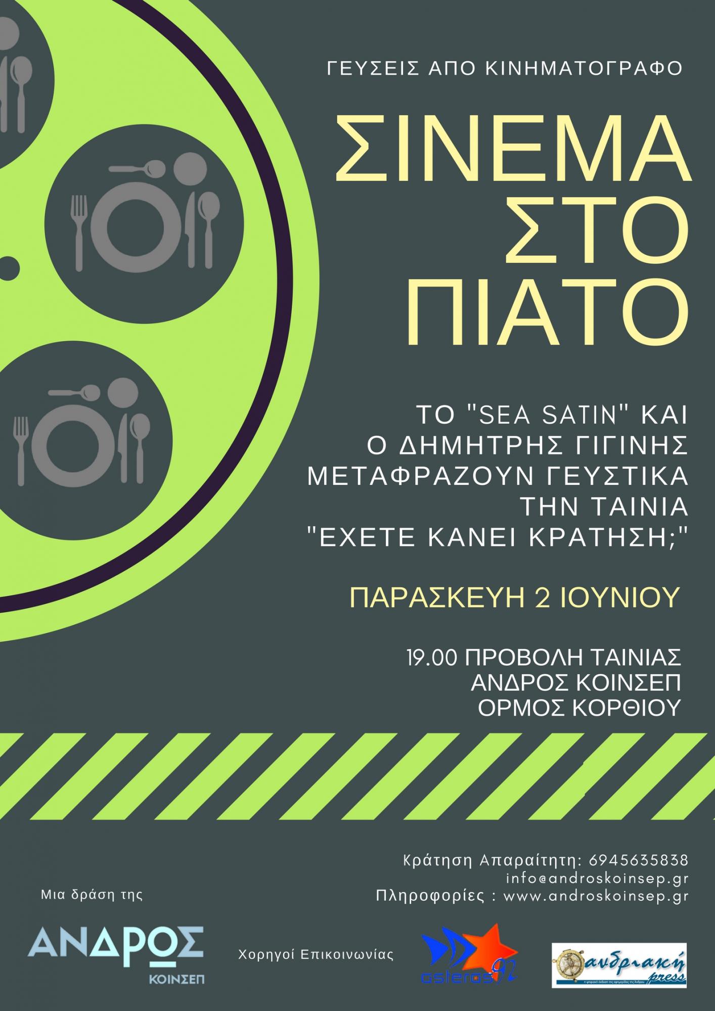 Αυτή την Παρασκευή 2 Ιουνίου θα πάρουμε μία γεύση μέσω της μεγάλη οθόνης από τη ζωή μιας μεγάλης σεφ και αμέσως μετά θα απολαύσουμε πιάτα που θα δημιουργήσει ο Δημήτρης Γιγίνης στο εστιατόριο του Sea Satin, εμπνευσμένα από την ταινία.