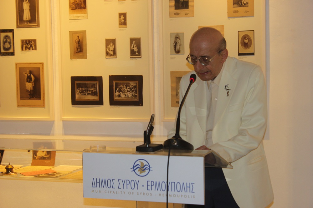 Τη χαρά και τη συγκίνησή του για την έναρξη της σημαντικής αυτής έκθεσης, μέσα από την οποία αποτυπώνονται στιγμές από μία κρίσιμη χρονική περίοδο για τη χώρα μας και ιδιαίτερα τη Σύρο, εξέφρασε στον χαιρετισμό του, ο Δήμαρχος Σύρου – Ερμούπολης Γιώργος Μαραγκός. Μεταξύ άλλων, ευχαρίστησε τον κ. Ελευθερίου, ο οποίος με το αστείρευτο ταλέντο του, το πάθος του, την αέναη δράση του και την αγάπη του για τις τέχνες και τα γράμματα αναδεικνύει τον πολιτισμό και την ιστορία μας, όχι μόνο στη Σύρο και την Ελλάδα, αλλά και πέρα από αυτήν. Τόνισε δε, πως η παρουσία του στα πολιτιστικά και ιστορικά πράγματα του νησιού αποτελεί σημείο αναφοράς τόσο για τις σημερινές όσο και για τις επόμενες γενιές. Δεν παρέλειψε, τέλος, να απευθύνει θερμές ευχαριστίες σε όλους τους συντελεστές της έκθεσης, οι οποίοι συνεργάστηκαν και μόχθησαν για να επιτύχουν αυτό το σπουδαίο αποτέλεσμα.