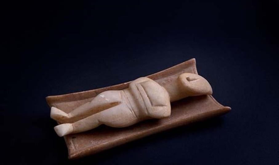 Το απόκρημνο γεωγραφικό ανάγλυφο, ο θαλάσσιος περιορισμός και η ανάγκη ώθησαν τη δημιουργία ενός ανθρωποκεντρικού πολιτισμού, όπου η ανθρώπινη μορφή (γυναικεία & ανδρική) σε ειδώλια κυριαρχεί, μιλώντας εύγλωττα για την κοινωνική ιεραρχία, τις ασχολίες, τις πίστεις και τις δοξασίες των προϊστορικών Κυκλαδιτών. Μέσα από την έκθεση, οι επισκέπτες του Διεθνούς Αερολιμένα Αθηνών θα πάρουν μια πρώτη εικόνα για το πώς ήταν οι Κυκλάδες το 3000 π.Χ., πριν επισκεφθούν σήμερα τα νησιά του Αιγαίου.
