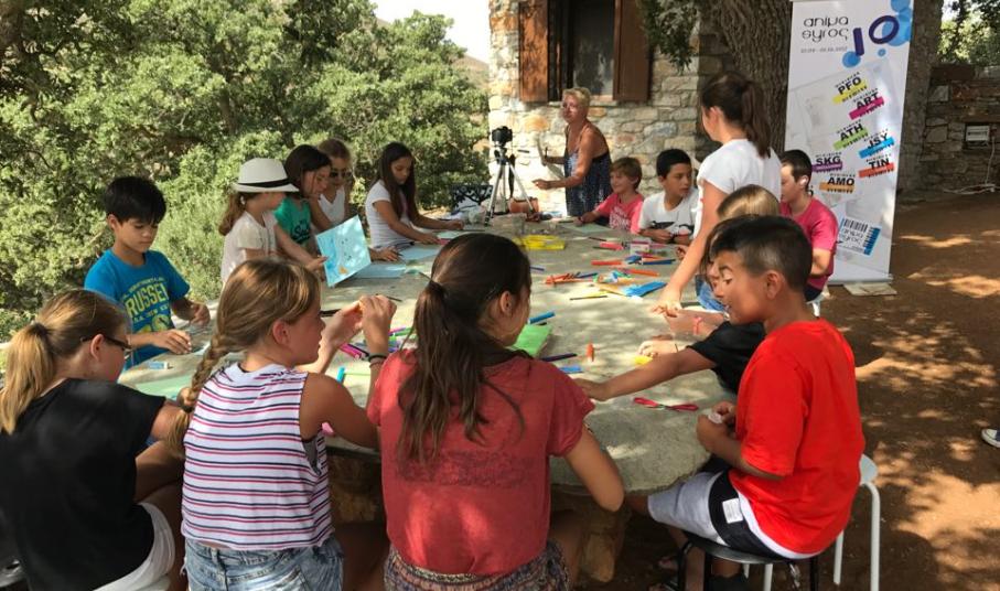 Το πρόγραμμα ξεκίνησε με το πρωινό εργαστήριο της εκπαιδεύτριας Κατερίνας Κρεμασιώτη, που είχε ως θέμα την Τήνο και τις παραδόσεις της. Παιδιά ηλικίας 10-12 ετών έκατσαν γύρω από το μαρμάρινο τραπέζι και ξεκίνησαν να σκέφτονται, να φαντάζονται και να κατασκευάζουν μια animated Τήνος.