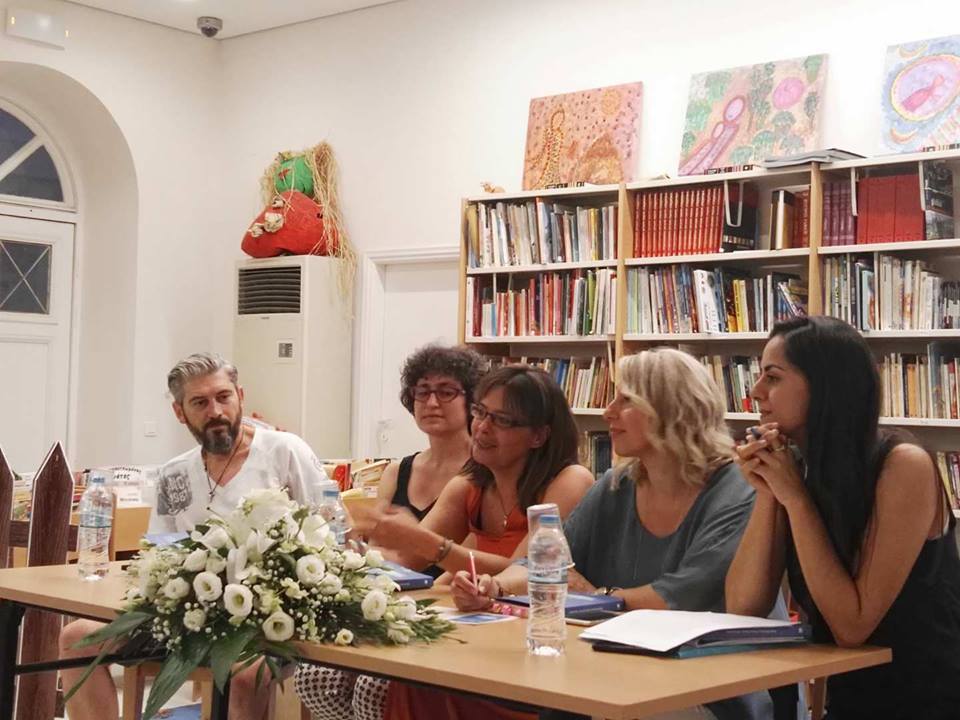 Στη συνέχεια, το κοινό είχε την ευκαιρία να συνομιλήσει με τις συγγραφείς του βιβλίου Μαρία Μαυράκη και Ειρήνη Μπάιλα, οι οποίες αναφέρθηκαν στη δημιουργική συνεργασία τους και στους τρόπους, με τους οποίους έκαναν πραγματικότητα τον κοινό τους στόχο. «Δεν ήταν εύκολη υπόθεση, υπήρχαν αρκετές δυσκολίες. Ο χρόνος μας πιεσμένος και φορτωμένος με πολλές υποχρεώσεις, αλλά το παλέψαμε. Παρατούσαμε την κατσαρόλα με το φαγητό και τρέχαμε να γράψουμε φράσεις. Κάποια κομμάτια γράφτηκαν μαζί, άλλα τα δούλευε η καθεμία μόνη της. Έπειτα, συναντιόμασταν και προσπαθούσαμε να διορθώσουμε, να συμπληρώσουμε. Ήταν μια υπέροχη εμπειρία, με αγκαλιάσματα, πλάκες, καυγάδες και ό,τι άλλο συνεπάγεται μία συνεργασία. Δεν ήταν όλα παραμυθένια, αλλά το αποτέλεσμα μας δικαίωσε», σημείωσε η κ. Μπάιλα.