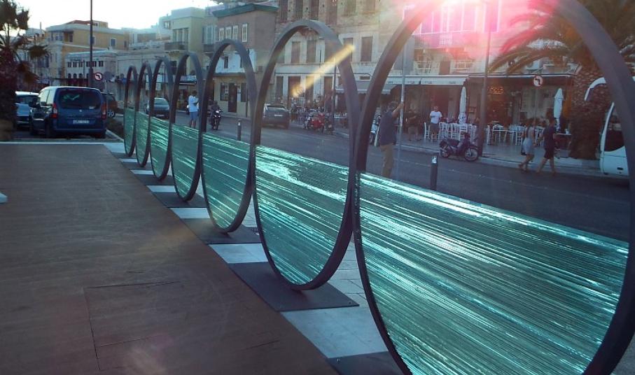 «Το ξέρουμε όλοι το συγκεκριμένο έργο, το οποίο έχει τοποθετηθεί στην παραλία. Είναι ένα έργο με επτά κύκλους από σίδερο και γυαλί και πρόκειται για μία ευγενική χορηγία του Ιδρύματος «Αντ. Εμμ. Κομνηνός». Στα εγκαίνια της έκθεσης του κ. Βαρώτσου, τοποθετήθηκε αυτό το γλυπτό στην παραλία ως προπομπός της έκθεσης. Είχε μεγάλη αποδοχή από το Συριανό λαό, αλλά και τους επισκέπτες και είχαμε ξεκινήσει να συζητάμε, για μία ενδεχόμενη δυνατότητα το γλυπτό να παραμείνει μόνιμα πλέον στην παραλία μας και να κοσμεί το συγκεκριμένο σημείο, κάτι που έτυχε ιδιαίτερα θετικής ανταπόκρισης, τόσο από τον ίδιο τον γλύπτη, όσο και από τον κ. Αντώνη Κομνηνό. Κατόπιν των παραπάνω, σήμερα έχουμε φτάσει στο σημείο να συζητούμε για την έγκριση αυτής της αποδοχής», ανέφερε στην εισαγωγή του ο κ. Κοσμάς.