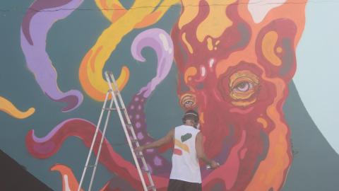 Άριστες εντυπώσεις, μα πάνω από όλα αξιοθαύμαστες τοιχογραφίες που, στο εξής, θα αποτελούν τις πρώτες εικόνες των επισκεπτών της Σύρου, κατά την έξοδό τους από το λιμάνι, άφησε το 1ο Stray Art Festival, που πραγματοποιήθηκε από 22 έως 24 Σεπτεμβρίου, με πρωτοβουλία των φοιτητών του Τμήματος Μηχανικών Σχεδίασης Προϊόντων και Συστημάτων.