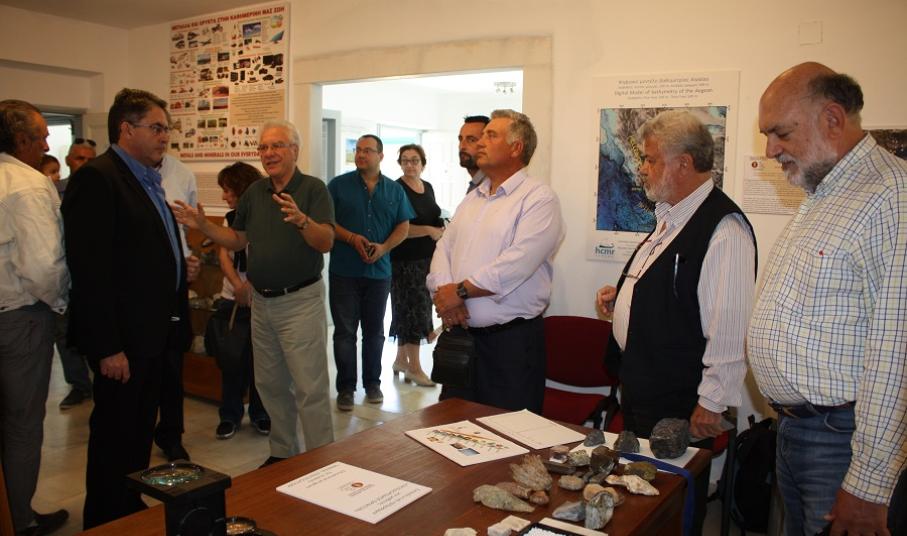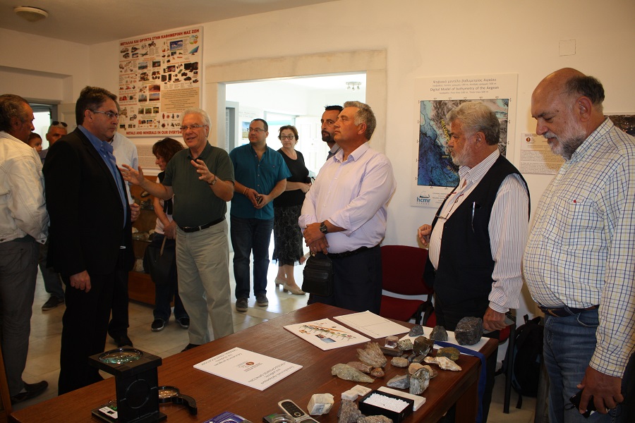 Τέλος, τα παιδιά ξεναγήθηκαν στις δυο αίθουσες του μουσείου. Στην «Αίθουσα Νάξου» ενημερώθηκαν για τη σμύριδα, την ιστορία εξόρυξής της και τα προϊόντα που παράγονται από αυτήν, για το μάρμαρο της Νάξου και τη χρήση του διαχρονικά και είδαν ευρήματα Παλαιολιθικών εργαλείων από πυριτιόλιθο, τα οποία εντοπίσθηκαν στη Στελίδα. Στην Αίθουσα «Το Αιγαίο και ο κόσμος» παρατήρησαν χάρτες που αποτυπώνουν τη μορφολογία και τη δομή του Αιγαίου Πελάγους, εντυπωσιακά δείγματα ορυκτών και πετρωμάτων, μεταλλεύματα κυρίως από ιστορικά μεταλλεία της Αττικής και των Κυκλάδων, ορυκτά και πετρώματα από 20 χώρες του κόσμου, ημιπολύτιμους λίθους, πολλά απολιθώματα μεταξύ των οποίων την γνάθο νάνου ελέφαντα, που έζησε στο νησί πριν από αρκετές δεκάδες χιλιάδες χρόνια κ.α.. Θα πρέπει να επισημανθεί ότι το ενδιαφέρον των μαθητών ήταν ιδιαίτερα ζωηρό τόσο για τα εκθέματα του μουσείου, αλλά και για το μικρό «εργαστήρι» που στήθηκε, προκειμένου να γνωρίσουν τις ιδιότητες των ορυκτών.
