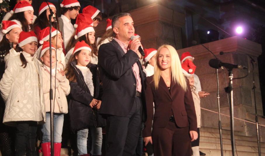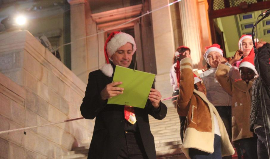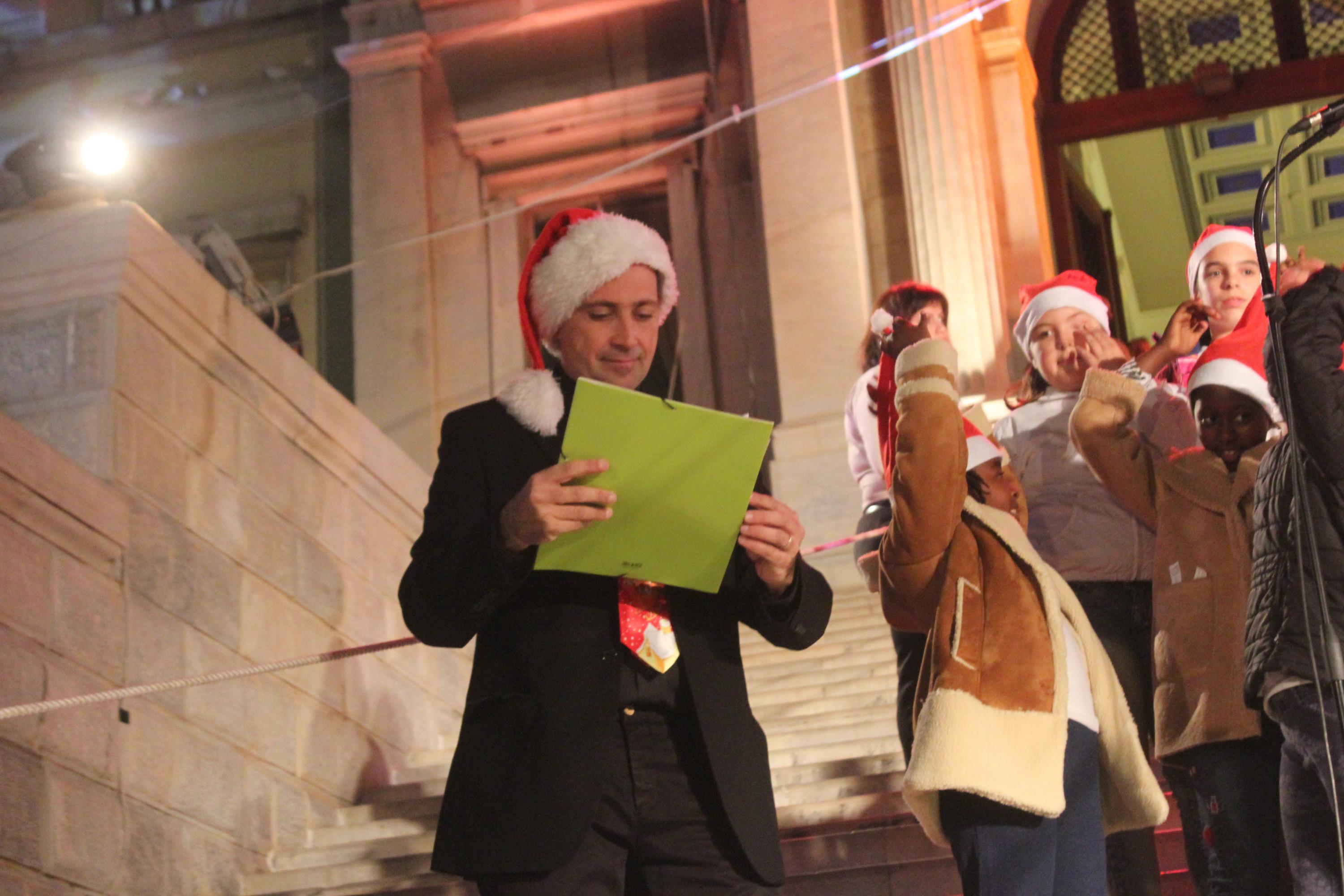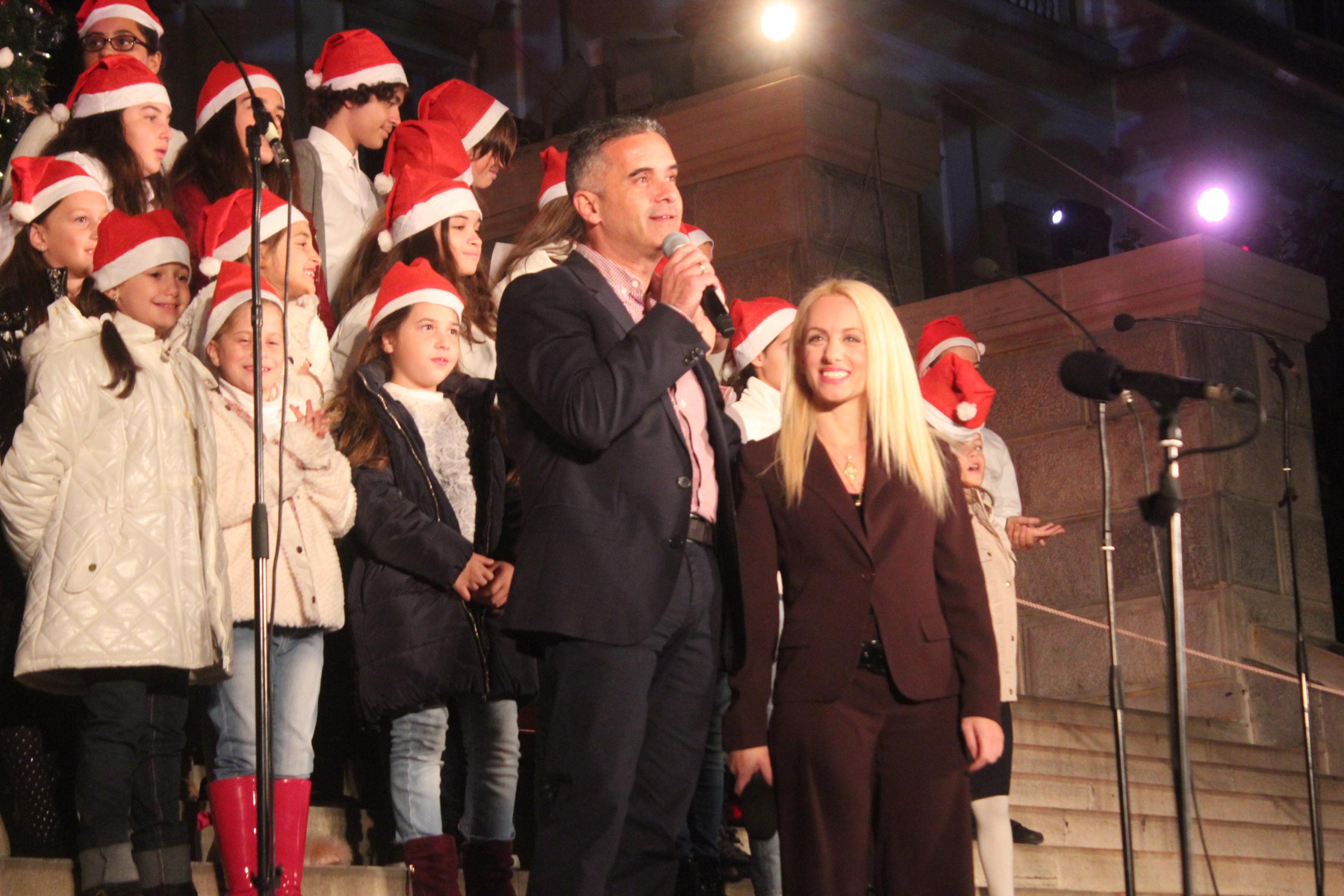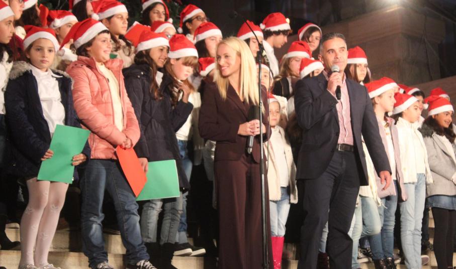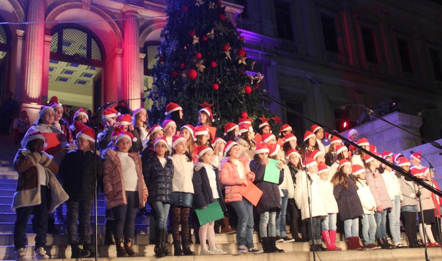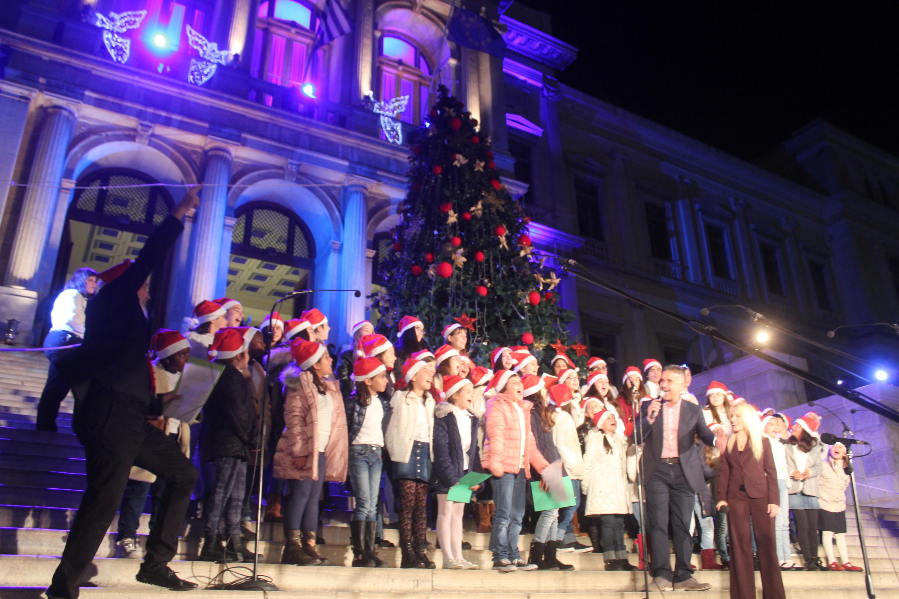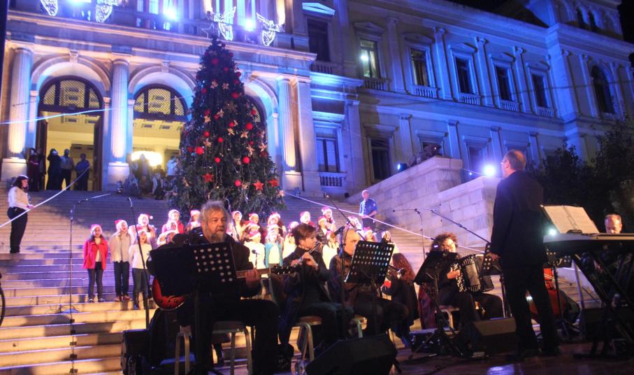 Τη φωταγώγηση του Χριστουγεννιάτικου Δέντρου, η οποία συνοδεύτηκε από φαντασμαγορικά πυροτέχνηματα, «έντυσε» μελωδικά η Παιδική – Νεανική Χορωδία της Ορχήστρας των Κυκλάδων, παρουσιάζοντας ένα ρεπερτόριο έξι χριστουγεννιάτικων τραγουδιών. Η εκδήλωση άνοιξε με το πασίγνωστο «Feliz Navidad» από το πρωτοεμφανιζόμενο Προπαρασκευαστικό Τμήμα της Χορωδίας, αποτελούμενο από όλα τα παιδιά που εγγράφηκαν φέτος στην Παιδική Χορωδία.