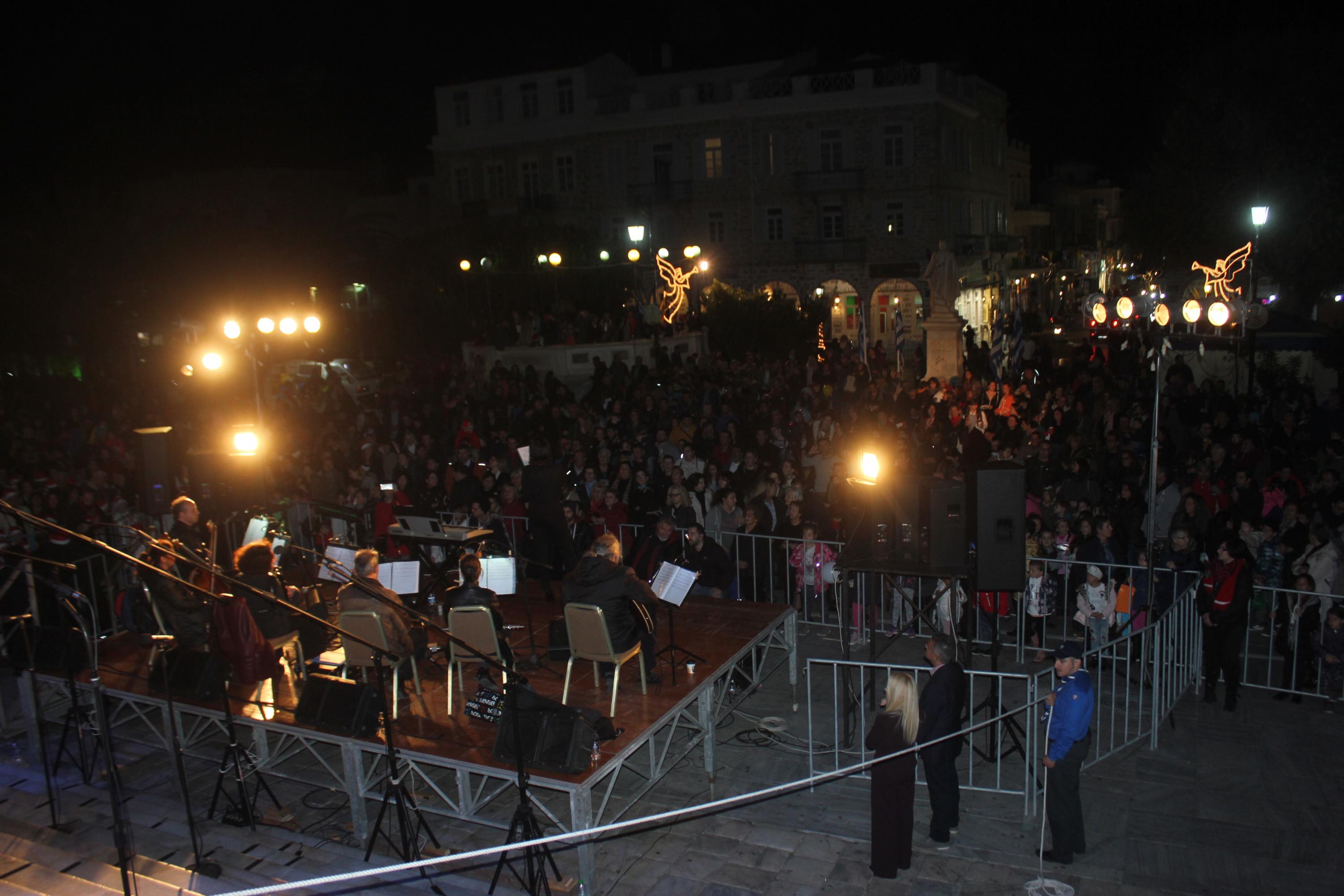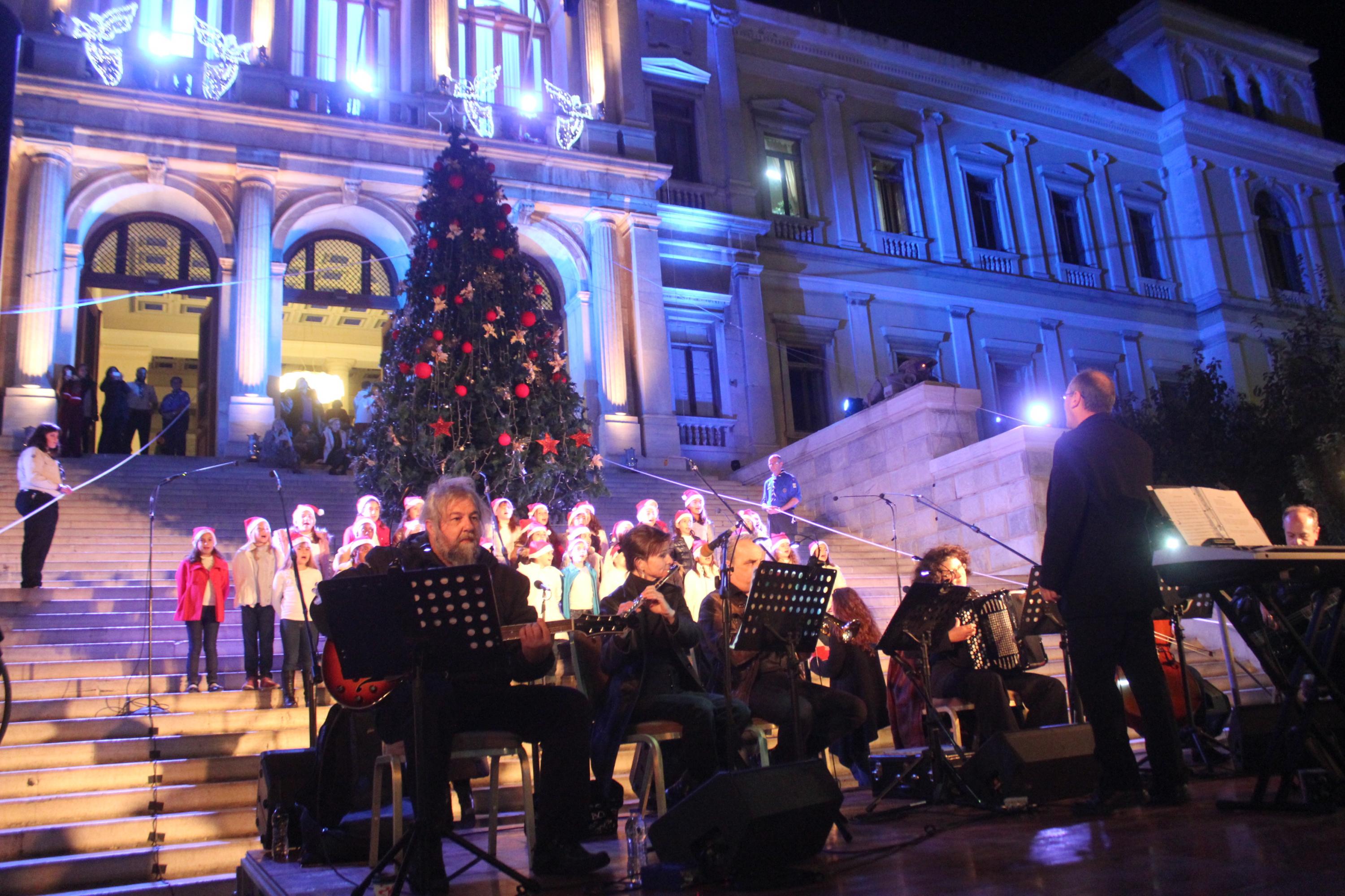 Τα γιορτινά της φόρεσε η πρωτεύουσα των Κυκλάδων, στέλνοντας από άκρη σε άκρη το μήνυμα της αγάπης, της ελπίδας και της αλληλεγγύης. Το Χριστουγεννιάτικο δέντρο του Δήμου Σύρου – Ερμούπολης και μαζί οι καρδιές μικρών και μεγάλων «φωτίστηκαν» στη χθεσινή έναρξη των εορταστικών πολιτιστικών εκδηλώσεων του νησιού στην πλατεία Μιαούλη.