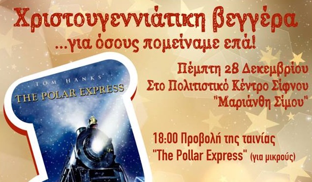 -Ώρα 18:00: Προβολή της ταινίας "The Pollar Express" (για μικρούς)