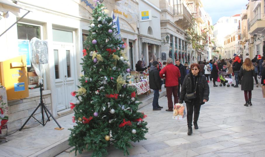 Ευνοϊκές ήταν οι καιρικές συνθήκες το πρωί της Κυριακής, δίνοντας την ευκαιρία στους κατοίκους της Σύρου να επισκεφτούν το κέντρο της Ερμούπολης και να χαρούν την Παραμονή των Χριστουγέννων.