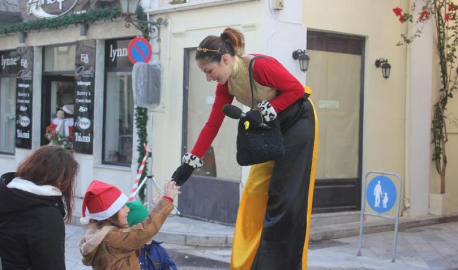 Εύθυμες μελωδίες, ξυλοπόδαρος που μοίραζε μπαλόνια στα παιδιά, αλλά και κεράσματα περίμεναν μικρούς και μεγάλους στην οδό Πρωτοπαπαδάκη, όπου πλήθος κόσμου ξεχύθηκε για να κάνει τις βόλτες του και τις τελευταίες χριστουγεννιάτικες αγορές του.