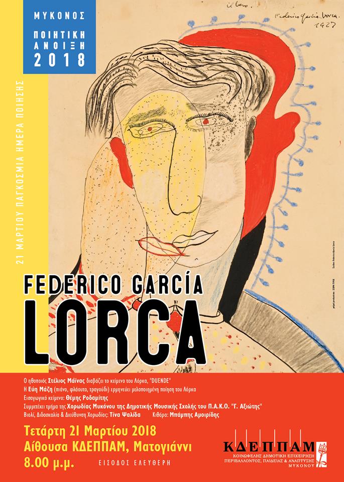 Στο πλαίσιο της «Ποιητικής Άνοιξης» που διοργανώνει κάθε χρόνο η Κοινωφελής Επιχείρηση την Παγκόσμια Ημέρα Ποίησης φέτος, με αφορμή τα 120 χρόνια από την γέννηση του Φεδερίκο Γκαρδία Λόρκα, θα έχουμε την ευκαιρία να παρακολουθήσουμε ένα μοναδικό αφιέρωμα στο έργο του μεγάλου Ισπανού ποιητή .