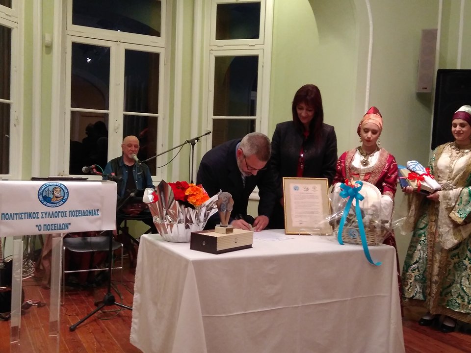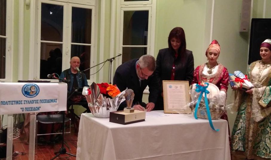 Με ιδιαίτερα συγκινητικά λόγια μίλησε για τη σχέση των δύο συλλόγων και ο Επίτιμος Πρόεδρος του Πολιτιστικού Συλλόγου Ποσειδωνίας, Μάρκος Ρούσσος.
