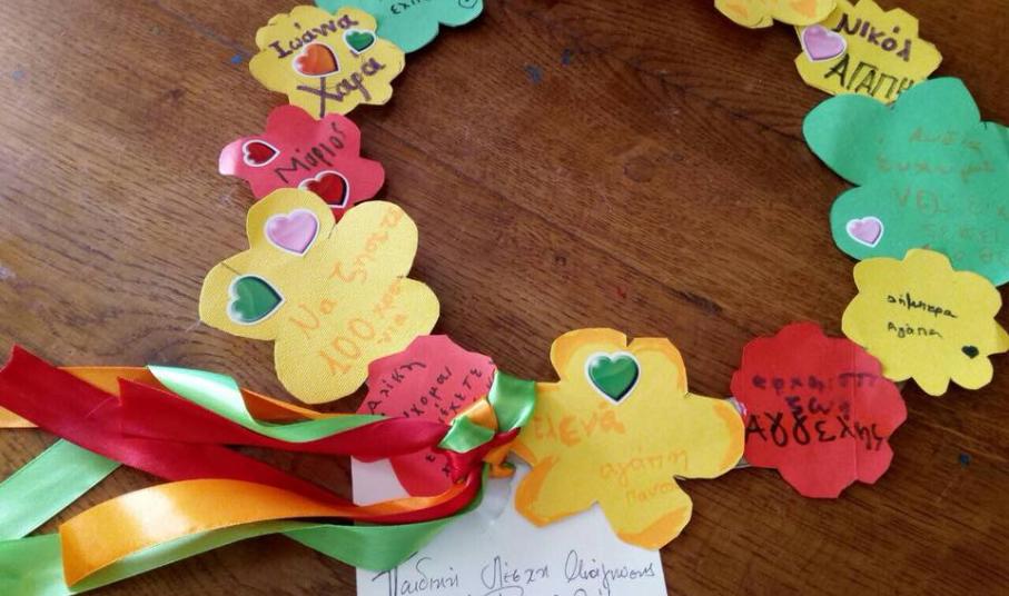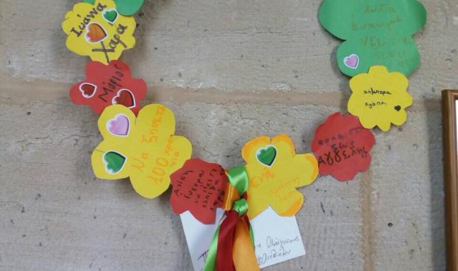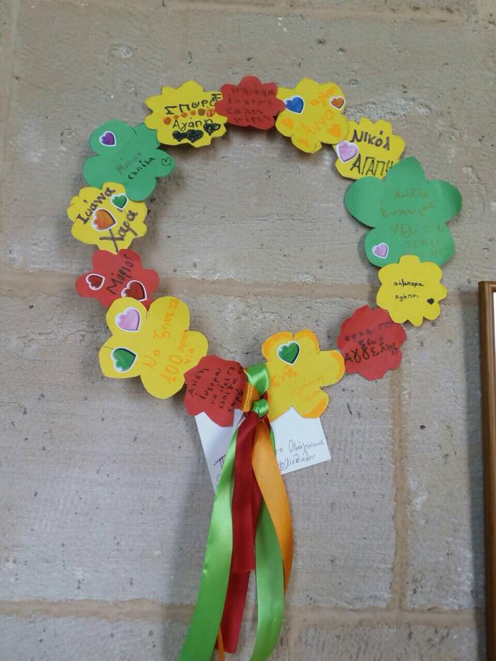 Οι μικροί φίλοι της Βιβλιοθήκης έφτιαξαν λουλούδια από χαρτί με τα ονόματα και τις ευχές τους και τα χρησιμοποίησαν για να συνθέσουν πρωτότυπα στεφάνια αγάπης, τα οποία χάρισαν στους τροφίμους του οίκου ευγηρίας. Στη συνέχεια, μικροί και μεγάλοι είχαν τη χαρά να ακούσουν όμορφα παραμύθια από την κ. Ρούσσου.