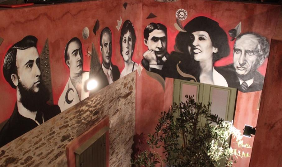 Έτσι, τέθηκαν τα θεμέλια για να δημιουργηθεί στην είσοδο του εκθεσιακού χώρου της Οικίας Κυβέλη μία καλαίσθητη τοιχογραφία, στην οποία απεικονίζεται η Κυβέλη και άλλα σημαντικά πρόσωπα του θεάτρου και της ιστορίας τόσο της Σύρου, όσο και της Ελλάδας γενικότερα, που συνδέονταν με την ίδια.