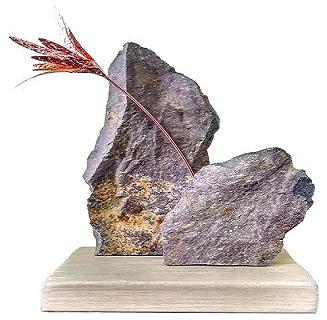 «Η άγρια ομορφιά του τοπίου της Μήλου, που γεννήθηκε σχεδόν εξολοκλήρου από τη λάβα των ηφαιστείων για να κατακτήσει μια θέση ανάμεσα στα μνημεία της φύσης, καθώς και η γεωλογία του νησιού αποτέλεσε σημαντική έμπνευση για το αγαλματίδιο. Κομμάτια λάβας, εξυμνούν τη ζωοποιό ιδιότητα του ηφαιστείου που δημιούργησε τη Μήλο, το ‘’νησί των χρωμάτων’’, χαρακτηρισμός που της αποδίδεται χάρη στην ποικιλία των χρωματισμών που διαθέτουν τα πετρώματα και τα χώματα της. Το κρινάκι της θάλασσας, ένα απειλούμενο είδος του νησιού, αποτελεί υπενθύμιση του σεβασμού που οφείλουμε στη φύση. Το χάλκινο χρώμα του παραπέμπει στο ζεστό αιγαιοπελαγίτικο φως, αλλά και στη λάμψη της λάβας που, αναδυόμενη από τα έγκατα της γης, τρέφει δίχως σταματημό τον κόσμο με την γόνιμη δύναμη της. Το έργο, εκτός από την ιδιαίτερη αίσθηση του νησιού, συμβολίζει την αέναη κίνηση και ζωογόνο δύναμη της γης. Συμβολίζει την υποχρέωση μας για σεβασμό στη φύση και την ανάγκη να τη μοιραζόμαστε με όλα τα έμβια όντα».