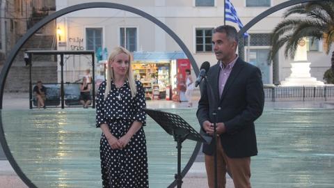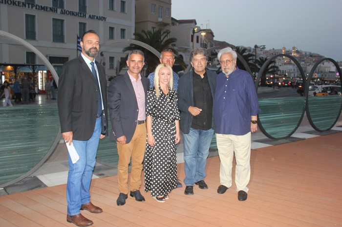 Στον χαιρετισμό της, η Αντιδήμαρχος Πολιτισμού, Θωμαή Μενδρινού συνεχάρη τόσο το Ίδρυμα Αντώνη Κομνηνού για τη γενναιόδωρη χορηγία του προς το νησί και φυσικά τον δημιουργό του υπέροχου γλυπτού, μέρος της επιτυχημένης έκθεσης «Διαστρωματώσεις», η οποία φιλοξενήθηκε πριν από έναν χρόνο στην Πινακοθήκη Κυκλάδων, στο πλαίσιο του προγράμματος «Σύρος – Πολιτισμός 2017».