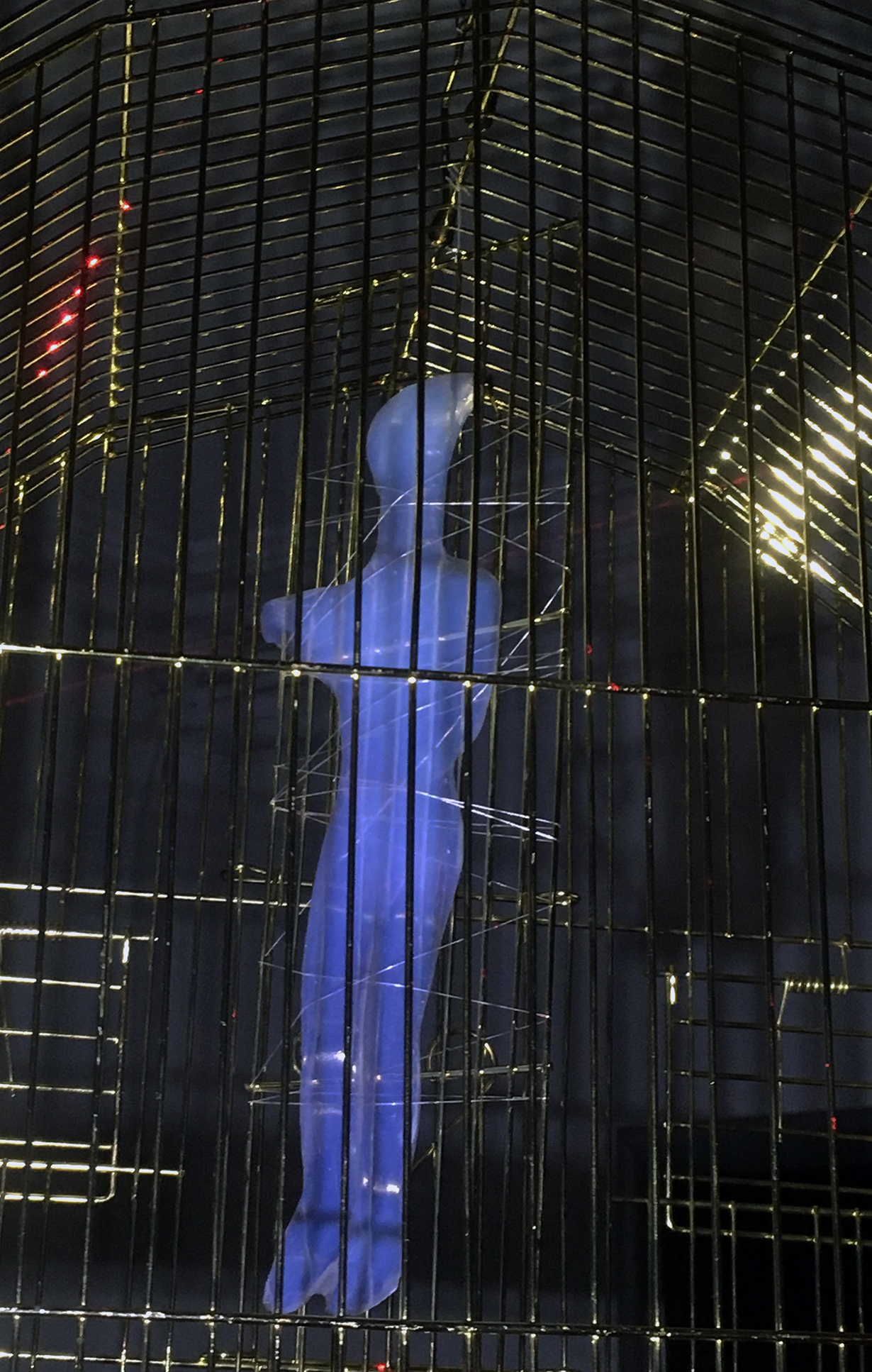 Η ιδέα της συγκεκριμένης εγκατάστασης συνδέεται με την εμβληματική διάσταση του κάστρου που εμπεριέχει τις έννοιες της προστασίας και του περιορισμού. Αυτά τα αλλεπάλληλα επίπεδα οριοθέτησης και περιχαράκωσης ολοκληρώνονται με την αλληγορική χρήση των κλωβών που δημιουργούν ένα ακόμη τείχος προφύλαξης. Ωστόσο, η αέναη δυναμική της φόρμας και των συμβολισμών που εμπεριέχουν τα κυκλαδικά ειδώλια καταφέρνει, με τη δύναμη του φωτός, να διαφύγει των περιορισμών και να ταξιδεύει αδιάλειπτα μέσω της ατομικής μνήμης και του συναισθήματος.
